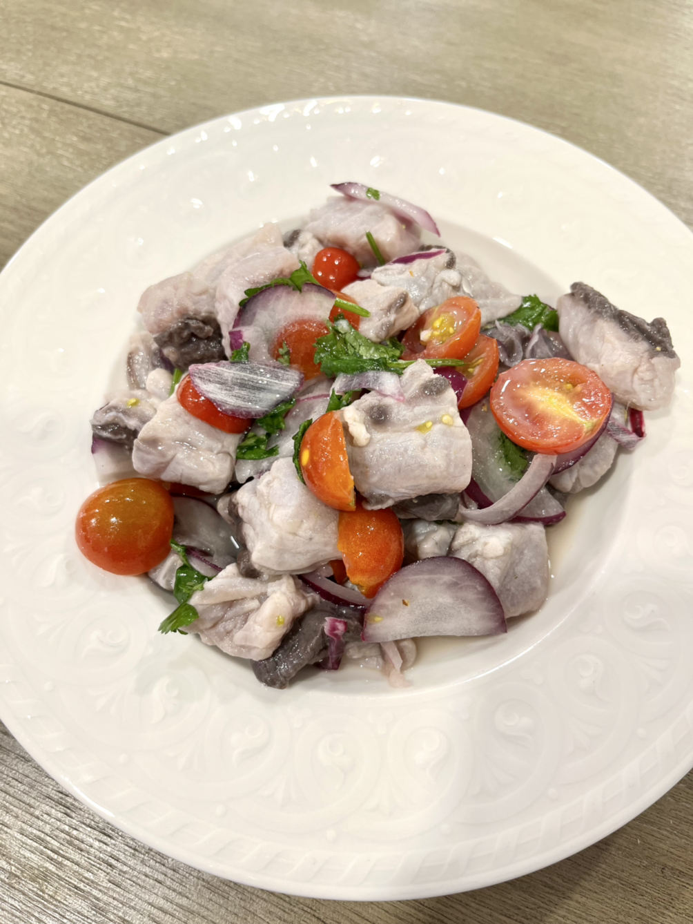 세비체는 생선에 소금과 라임간을 해서 반나절 숙성시키고 입맛에 따라 고수, 토마토, 적양파 등을 넣어서 먹는데 아주 별미입니다. 신선해서 두배로 맛있습니다. 고수랑 방울토마토도 집에서 키운 거라 향이 좋습니다!