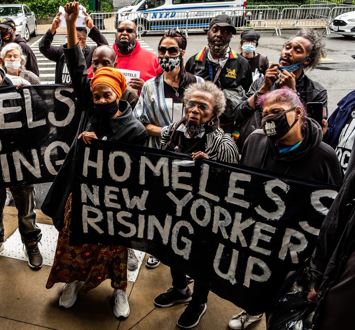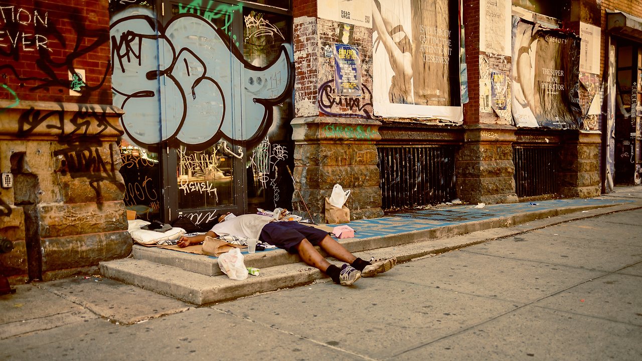 미국 전체에서 노숙자 수는 캘리포니아 주가 제일 많으나 대도시 단위에서는 뉴욕시가 단연 으뜸이다. 두 지역에 유독 노숙자가 많은 이유는 두 곳 다 집세 등 기본 생활비가 비싸 실직 등으로 수입이 끊길 경우 쉽게 길거리로 내몰릴 수밖에 없는 환경인 데다 사람들이 붐비는 대도시여서 구걸행위가 용이한 것도 한 원인으로 추측된다. 특히 뉴욕시는 캘리포니아에 비해 혹독한 겨울이 있어 노숙하기에 매력적인 곳은 아니나 오래전에 만들어진 노숙자 주거지원법 때문에 많은 사람들이 몰려오는 것으로 보고 있다.