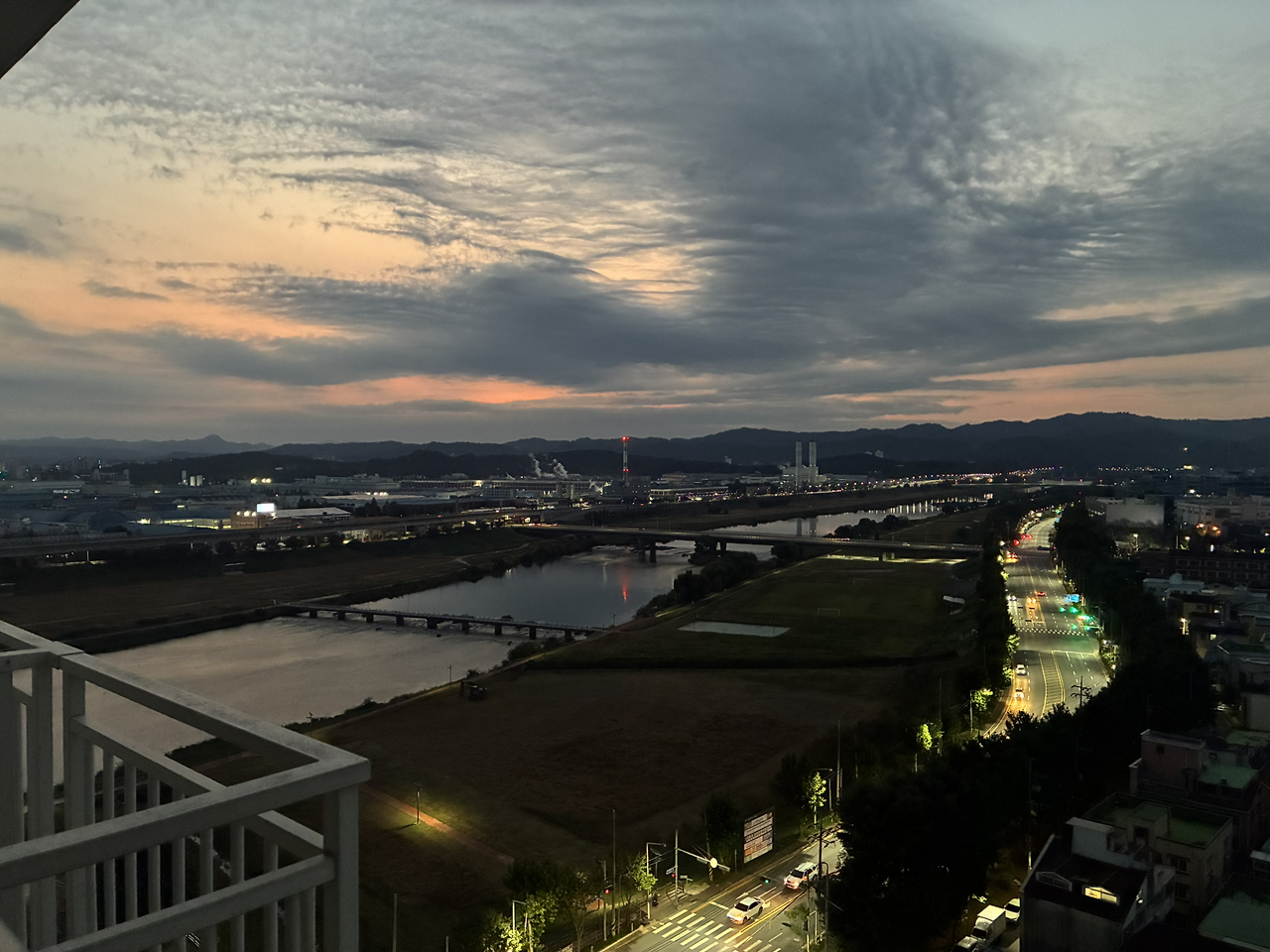 토요일 오랜만에 새벽에 일어나 앉아있다가 베란다 창 밖 너머로 일출을 보니 좋았다.