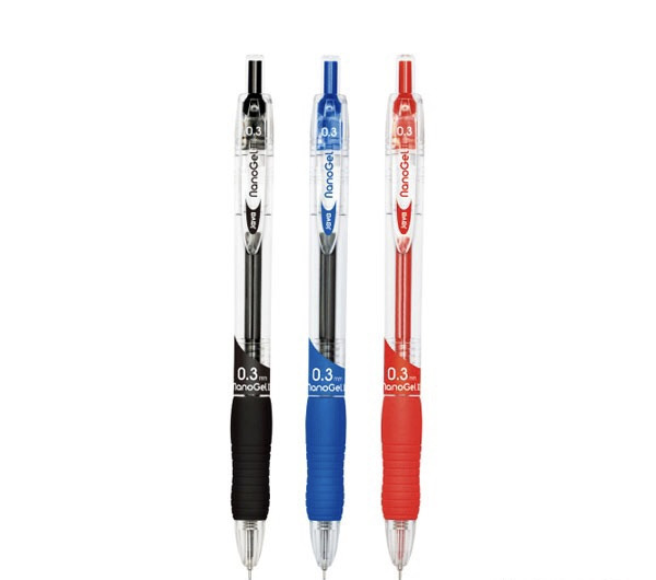 오랜 시간 펜을 쥐고 있는 사람들은 그립감도 신경 쓰죠. 저는 펜을 잡을 때 힘을 과하게 주는 편이라 볼펜 아래쪽에 고무를 두른 펜을 선호해요. 파인테크RT와 나노겔2가 그런 경우였어요.