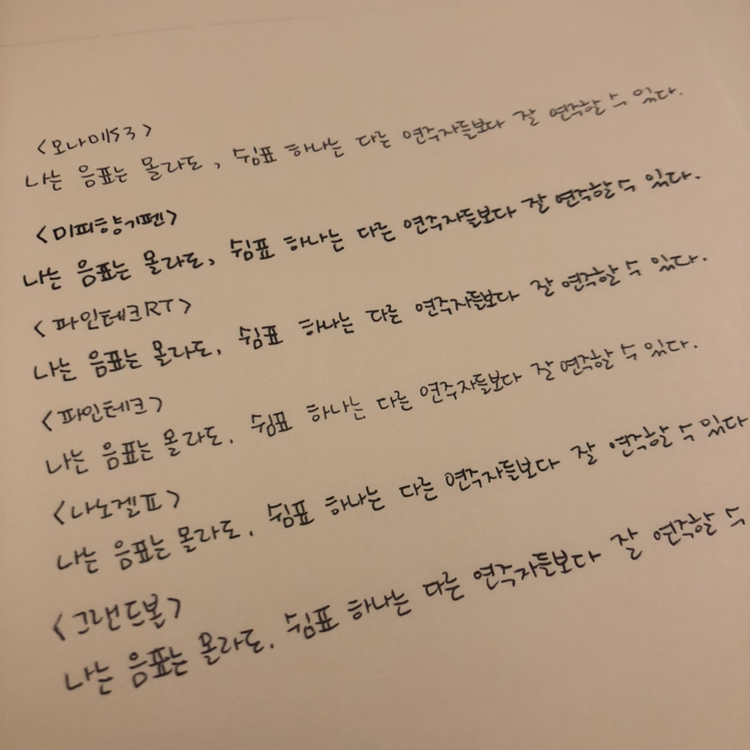 가장 먼저 노트에 선을 쭉 그어 봤어요.