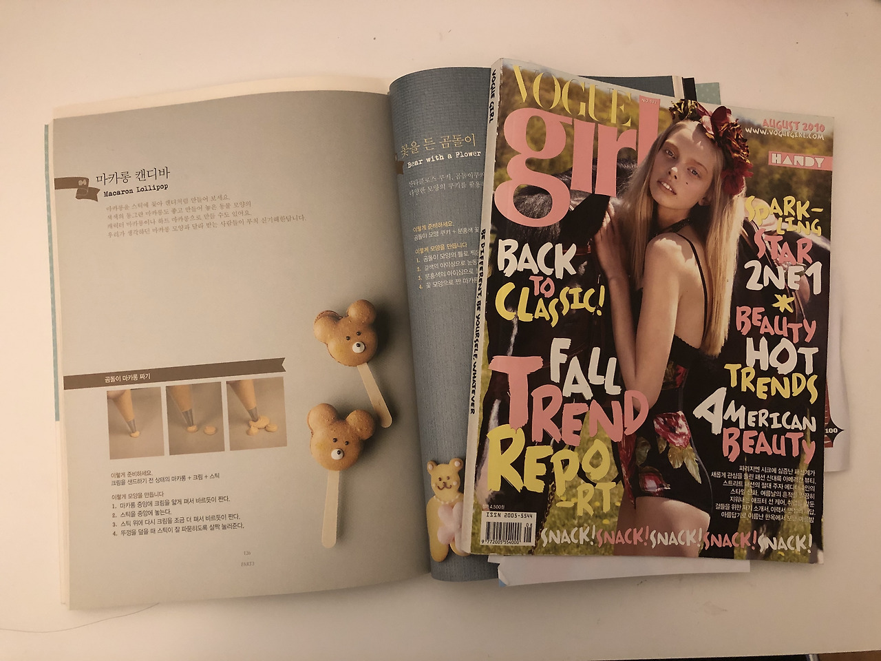 특히 즐겨 찾는 재료는 패션잡지다. 철 지나면 다시 꺼내보는 일이 드문데, 그렇다고 그냥 버리기에는 아깝기 때문이다. 게다가 패션잡지는 사진과 글자가 감각적이고 화려해 웬만한 스티커 못지않게 유용하다.