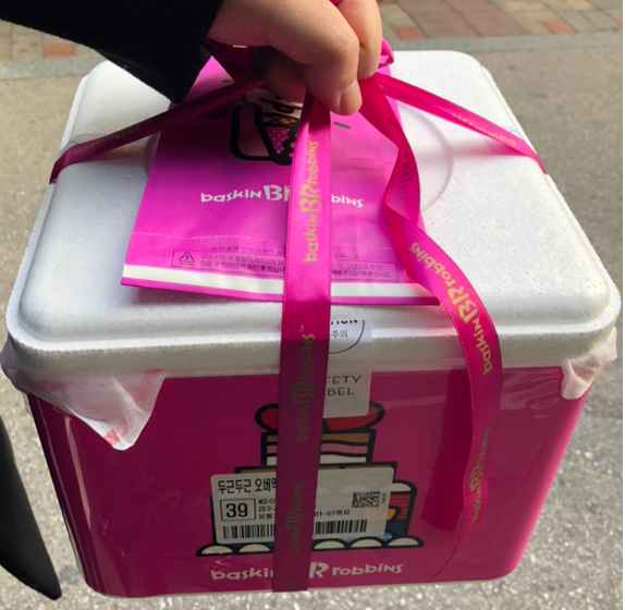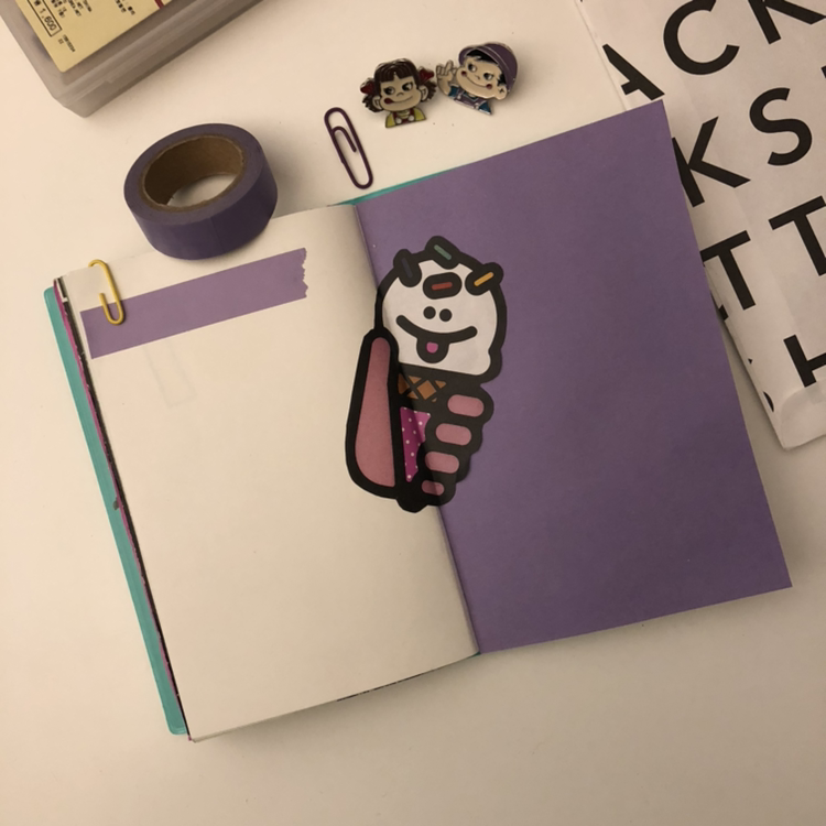 한 예로 내가 자주 찾는 배스킨라빈스에서는 아이스크림 케이크를 사면 분홍색 종이봉투에 양초를 담아준다. 이 봉투에서 캐릭터만 쏙 잘라 비스듬히 일기장에 붙여봤다.