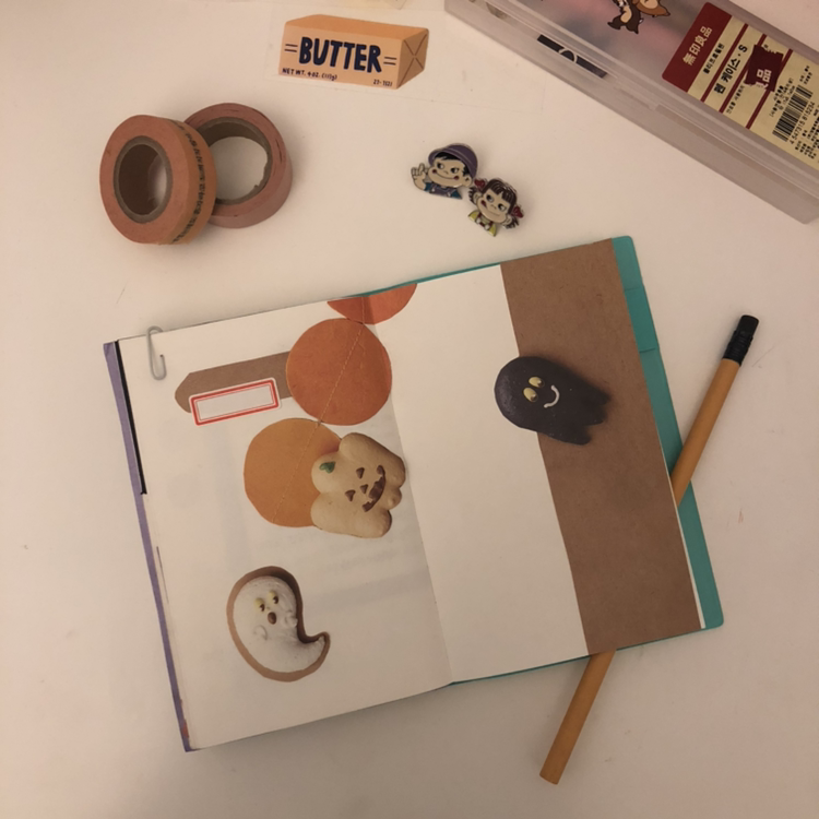 때로는 요리책에서 아기자기한 부분을 골라 사용하기도 한다. 일부러 유령이 살짝 튀어나온 느낌으로 오려봤는데, 맘에 든다!