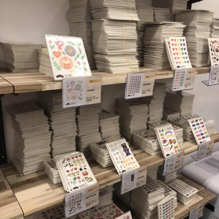 제품별로 누가 만들었는지 친절하게 적혀 있다는 점도 맘에 들었다. 디자이너들을 배려한 느낌이랄까. 제품을 구입한 뒤에는 2층에 있는 슬라임 카페에서 무료로 다꾸를 할 수 있다.