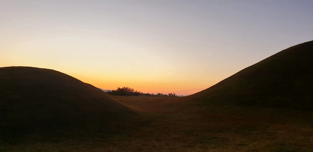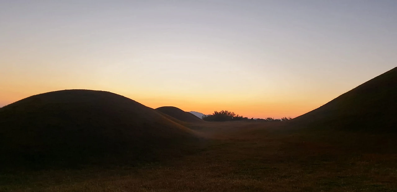 노을이 온다. 서쪽 바람에 기대어 비화가야의 하늘이 저물어 온다. 옛 님 뒷동산 오르듯 옛 귀한 님들 무덤가에 오른다. 산 자와 죽은 자들의 고운 핏물 같은 저 노을이 온다. 저 노을에 옛이야기가 다가온다. 발간 얼굴들이 말을 걸어온다. 미래는 어떤 곳이냐고. 낯설지 않은 얼굴들에 나도 말을 걸어 본다. 과거는 즐거운 곳이냐고. 잠시 귓가에 머물다 마구 파헤쳐진 자국을 보듬다 그렇게 노을이 간다. 나도 함께 노을이 된다. 비화가야의 저녁으로 간다.