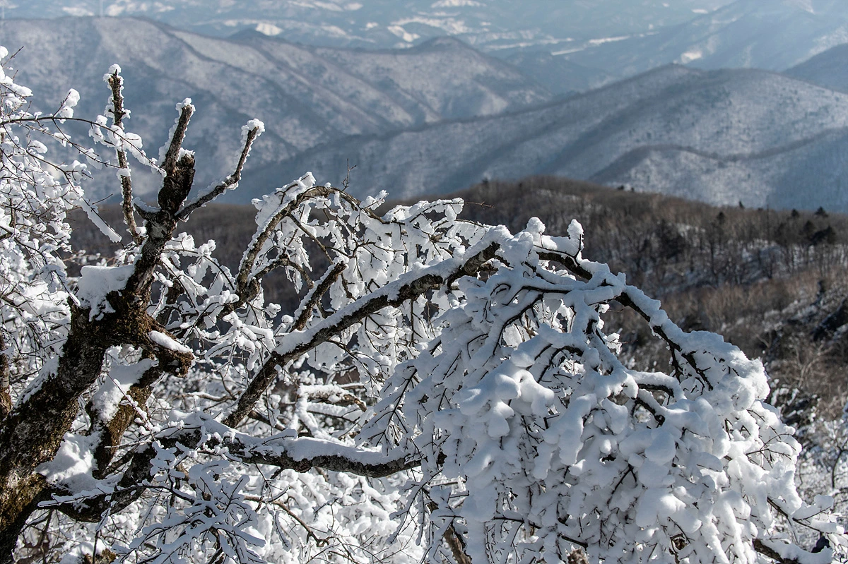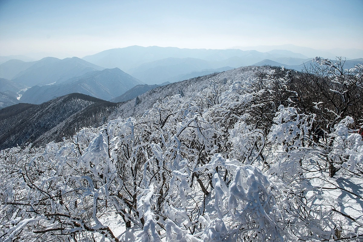 푸른색으로 우거진 것이 주는 느낌과 하얀색으로 우거진 것이 주는 느낌이 많이 다르지만 감동도 색다르다. 산정상에서 부는
