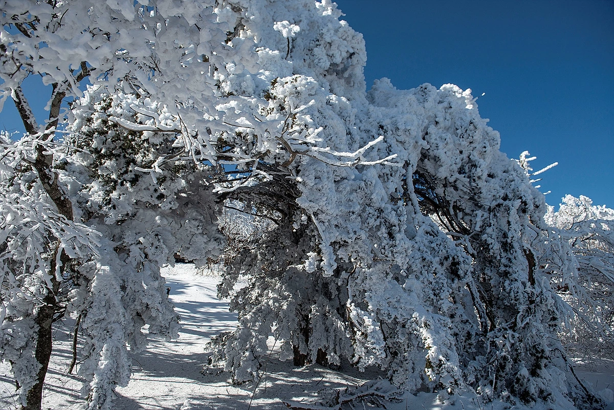 나무들은 뒤덮인 눈으로 나뭇가지가 휘청거릴 정도 우거졌다. 여름에는 많은 잎으로 녹음이 우거졌다고 하는데 겨울에는 눈으로 눈꽃을 만발하게 피었으니 우거졌다고 할 수밖에ᆢ