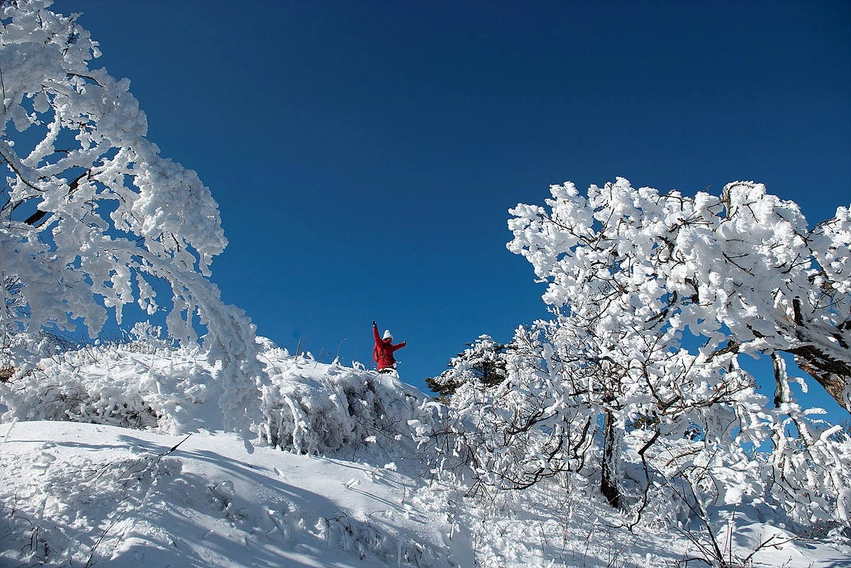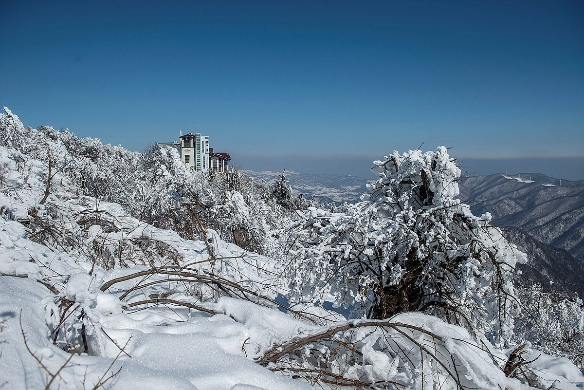 난 서둘러 발왕산 케이블카를 타고 해발 1459미터 산 정상에 올랐다. 내린 눈으로 온통 하얗게 뒤덮인 별세계가 펼쳐졌다.