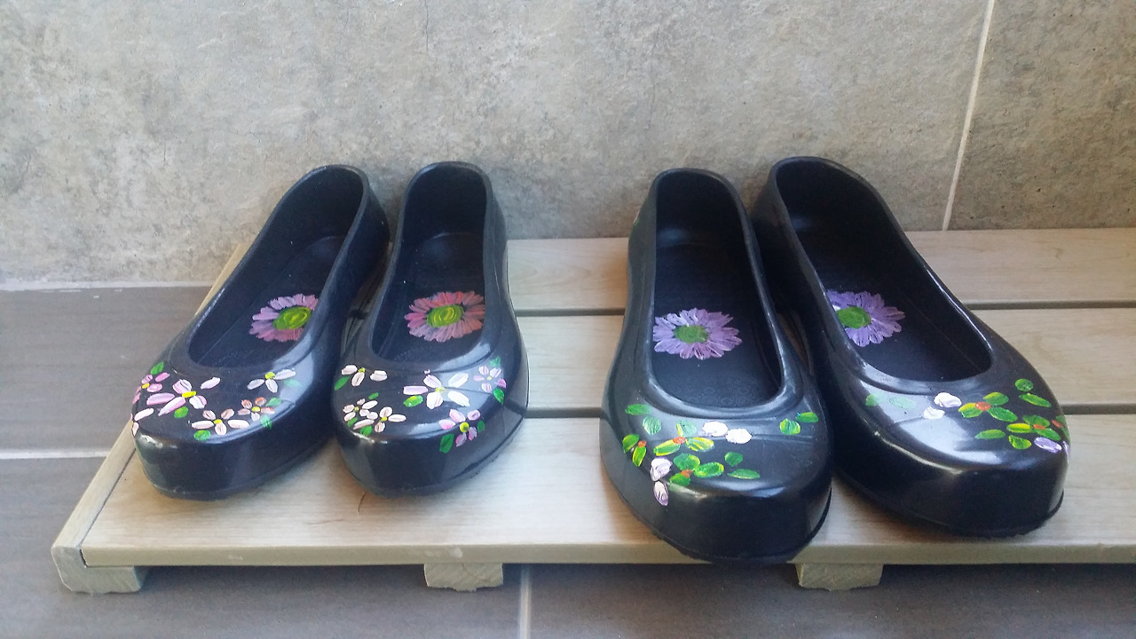 안 신고 구석에 처 밖아 놓았던 고무신에 아내는 이쁜 꽃을 그려 넣었다.