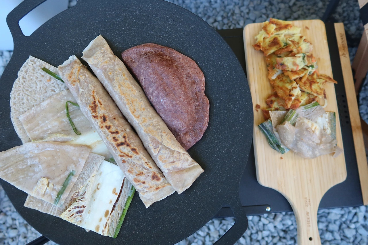 캠핑장에 도착하자마자 영월 서부시장에서 포장해온 모둠전을 데워 먹었다. 캠핑은 역시 먹는 게 재미지. 동네 반찬가게에서 전 한 팩에 만원인데 이게 모두 만원이라니! 만원의 행복이다. 낮에는 관광다니느라 힘들었는데 영월에서의 마지막 날 밤은 모둠전과 함께 행복했다는..^ ^