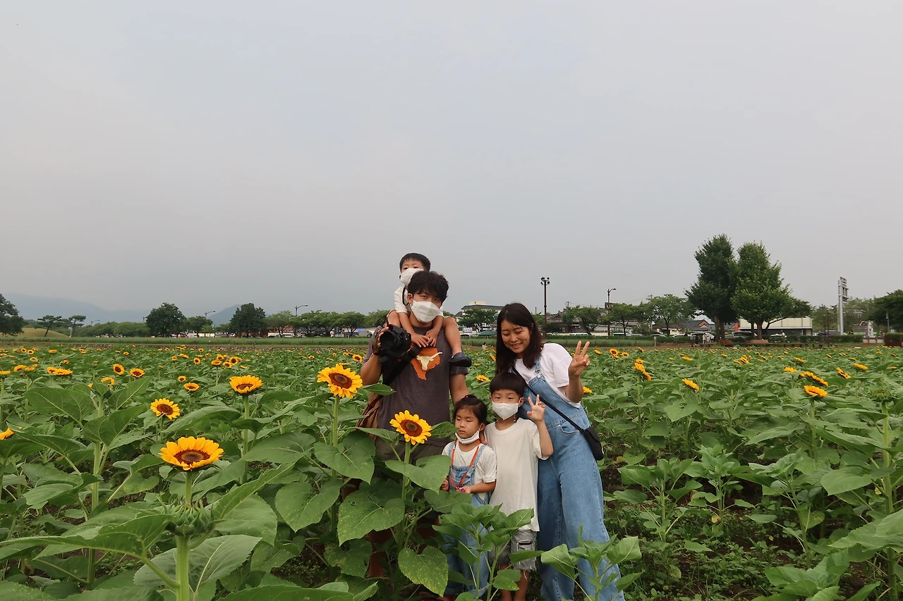 첨성대 구경을 마치고 바로 옆 꽃단지로 향했다. 여러 종류의 꽃이 있었는데 해바라기가 꽤 넓게 심어져 있었다. 이렇게 많은 해바라기는 또 처음 본다. 경주에서 꼭 하고 싶었던 일 중 하나였던 남편과 둘이 왔었던 꽃단지에서 가족사진 찍기! 미션 클리어! 한 명은 목마 태우고 두 명 손 잡고 있느라 정신없었지만 오래오래 기억될 가족사진이다. 몇 년 후에 다시 이곳에 와서 가족사진을 남기면 그땐 또 어떤 모습일지 기대된다.