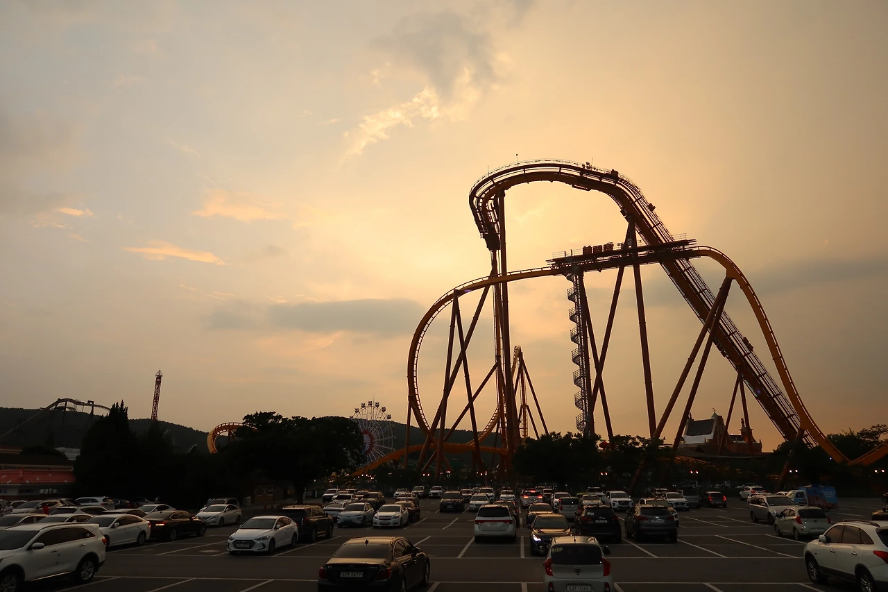 저녁도 먹었으니 산책할 겸 밖으로 나갔다. 숙소 근처에 경주 월드가 있었는데 ‘드라켄’이라는 놀이기구만 보였다. 90도로 떨어지고 360도 회전을 두 번이나 하고 보기만 해도 스릴이 넘친다. 엄마 아빠는 무서워서 탈 생각도 1도 없는데 아이들이 타고 싶다고 타면 안 되냐고 ㅎ ㅎ