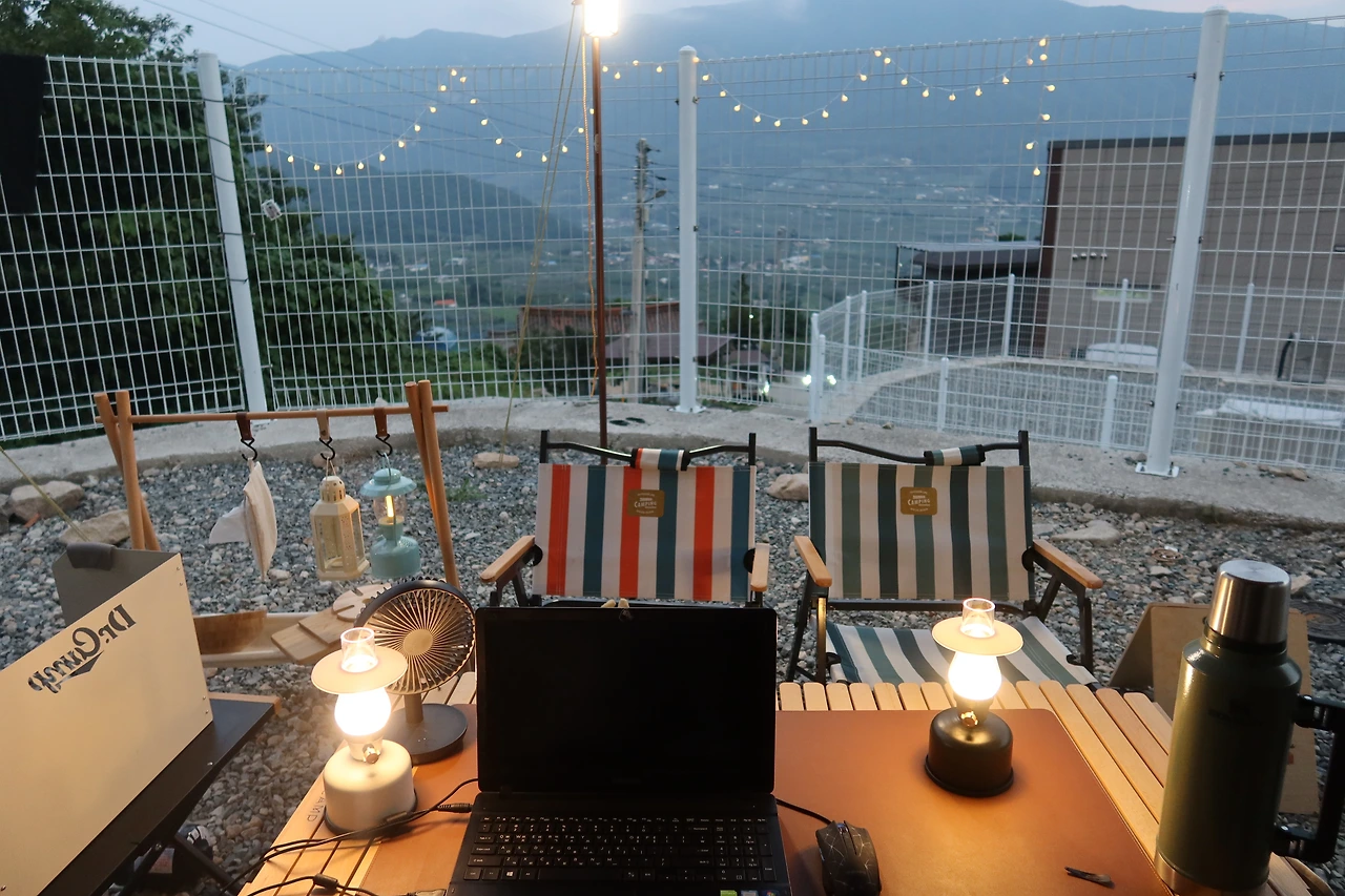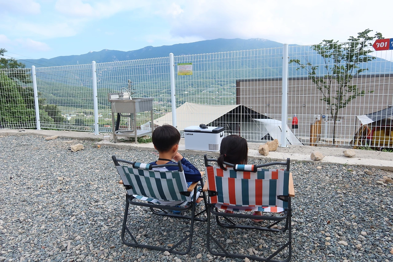 호박소 계곡에서 물놀이를 마치고 도로변에 있는 사과 가게에서 초록 사과도 사고 캠핑장으로 이동했다. 밀양이 영남 알프스 맞네 맞아. 캠핑장 뷰가 정말 멋졌다. 전국 여행 3번째 캠핑장이라 그런지 남편과 나는 손발이 척척 맞아 빠르게 텐트 세팅을 끝냈다. 밀양에 도착해서 점심 먹고 계곡에서 놀고 캠핑장 와서 저녁 먹었더니 하루가 끝났다. 밀양의 첫 느낌 정말 좋다. 왜 경상도 사람들이 밀양으로 여름휴가를 오는지 알겠다.