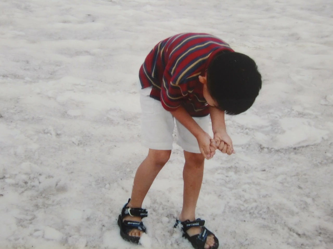 고도 약 3,600m 높이에 위치한 Alpine Visitor Center를 자동차로 올랐다. 네 식구 중 유독 남편에게서 고산증세가 나타나기 시작했다. 이후에도 3,000m 이상 지역에서는 항상 두통 때문에 힘들어했다. 그곳 안내판에는 뛰지 말라는 경고도 있다. 빨리 걸으면 숨이 금방 가빠진다. 천천히 걸으면서 샌들을 신은 채로 만년설도 밟아봤다. 신기한 경험이었다. 바로 앞 산에는 빙하의 침식으로 생긴 카르(권곡)가 보였다. 카르는 산지 한쪽 경사면이 반원 모양으로 침식된 와지를 말한다.