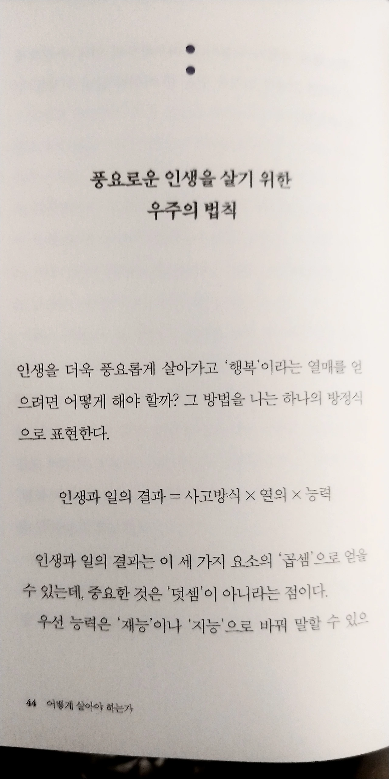 인생과 일의 결과=사고방식 x 열의 x 능력