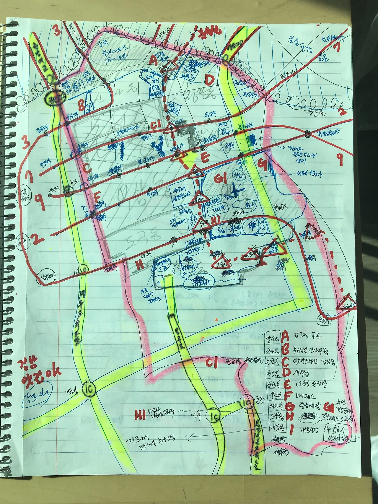강남은 지하철과 버스노선이 거미줄처럼 촘촘하게 연결되어 있는 서울에서 차 없이 다니기 가장 좋은 교통의 요지다. 앞서 살펴본 바 있는 여의도 임장은 심플했지만 아래의 강남 임장지도는 얼핏 봐도 복잡해 보일 것이다.