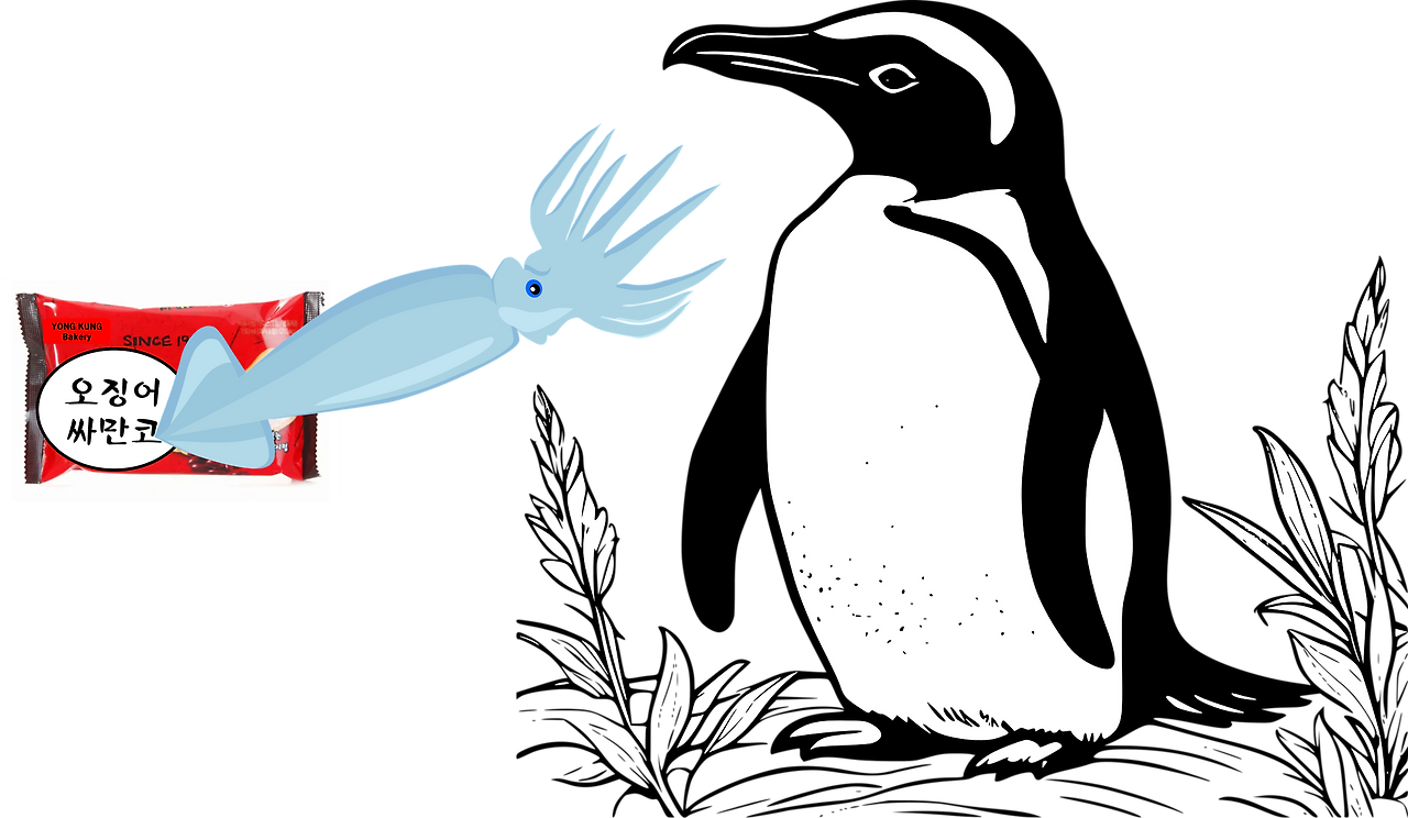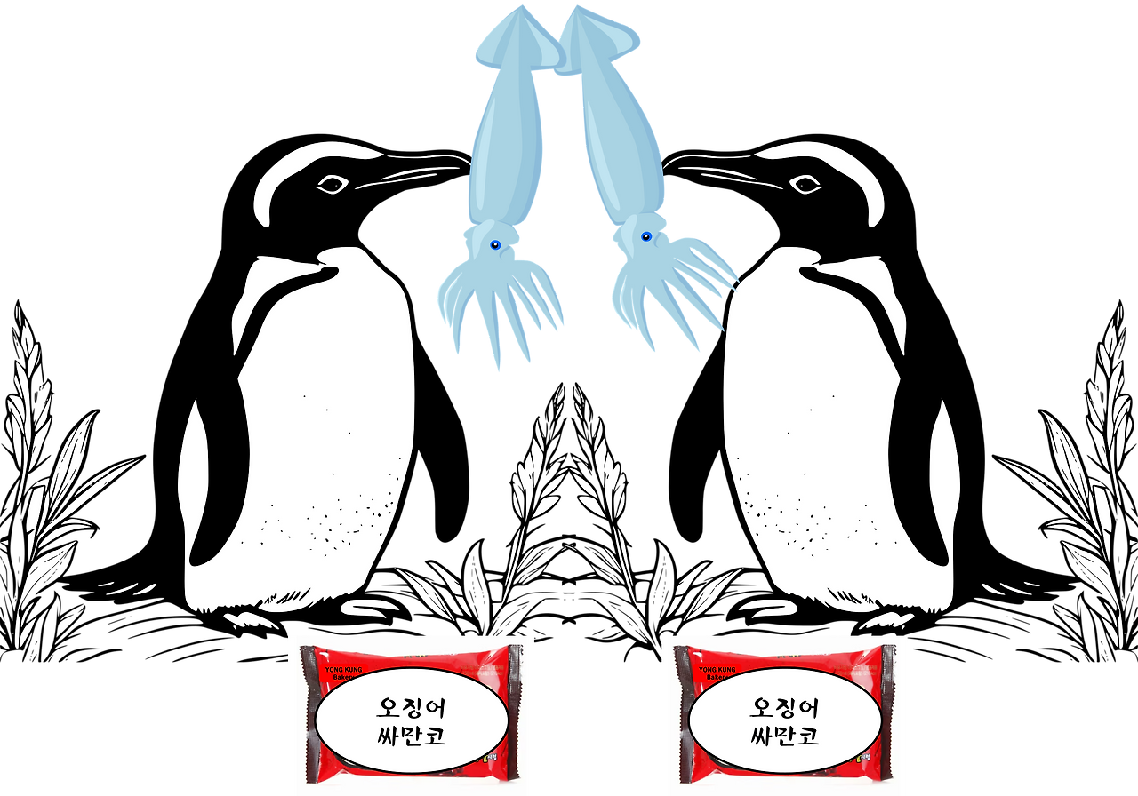 "맞아. 훔볼트펭권들의 주식은 오징어거든."