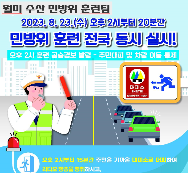 "아, 이거 민방위 훈련 같은 거야. 우리 월미수산 아쿠아리움도 월 1회 정기 대피 훈련을 하거든."