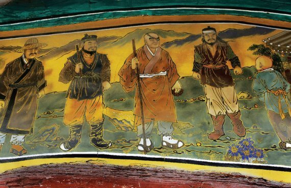 칠장사 명부전 궁예벽화. 궁예의 말기와 최후 행적은 석연치 않은 점이 많다.