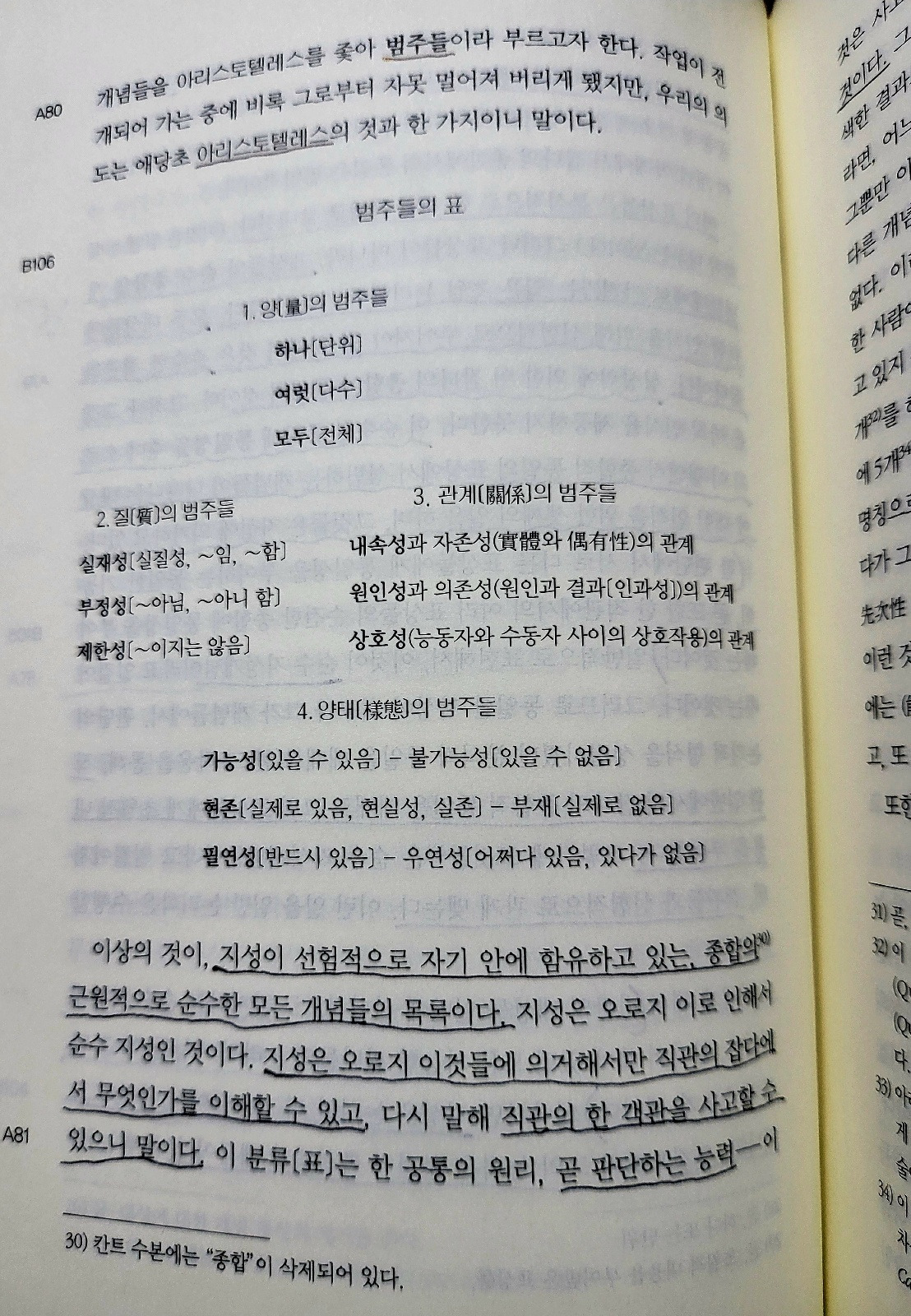 범주들이란, 현상들에게, 그러니까 모든 현상들의 총괄인 자연에게 선험적 법칙들을 지정하는 개념들이다. 법칙들은 현상들 안에 실존하는 것이 아니라, 현상들이 의존하고 있는 주관이 지성을 갖고 있는 한에서, 그 주관과 관계해서만 실존하는 것이다. 현상들이란 그 자체로서는 무엇인가에 대해 알려진 바 없이 있는 사물들의 표상일 따름이다.