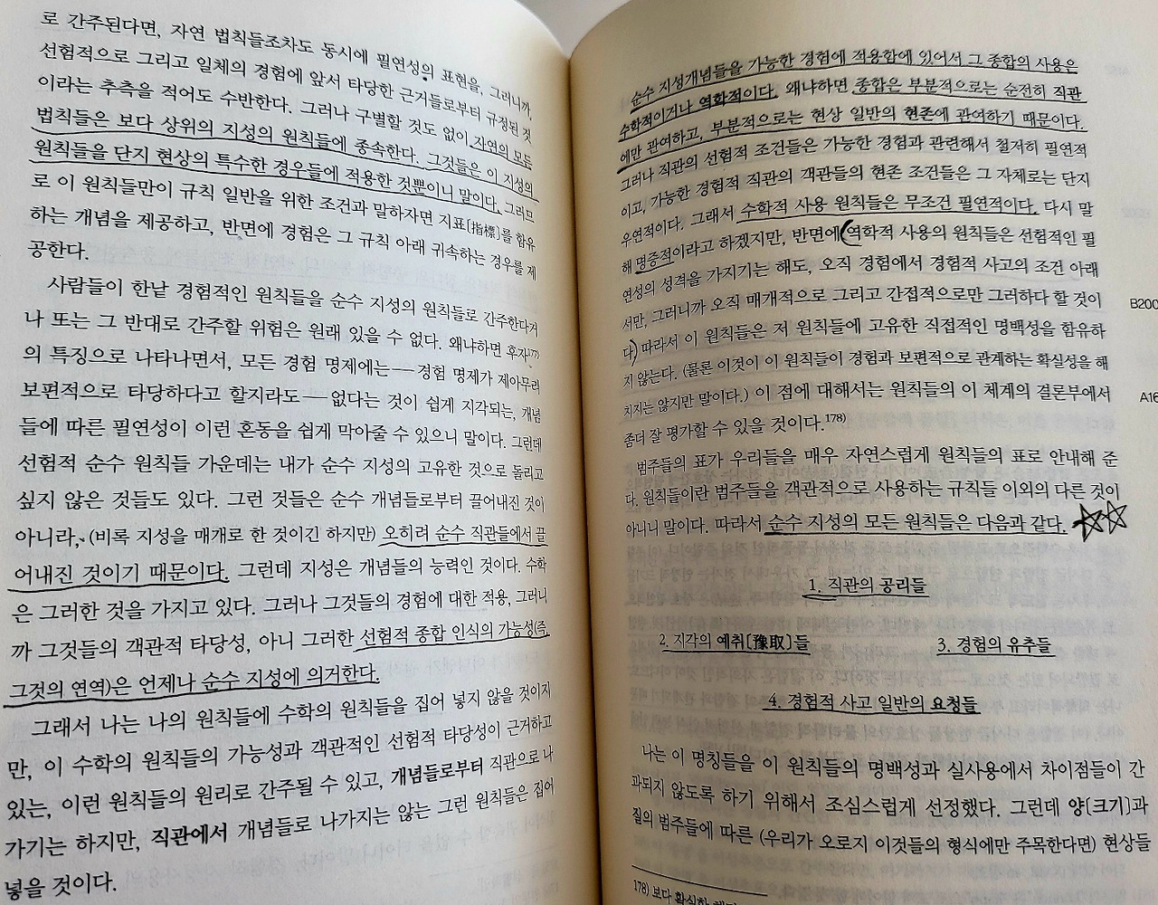1. 직관의 공리들 2. 지각의 예취들 3. 경험의 유추들 4. 경험적 사고 일반의 요청들
