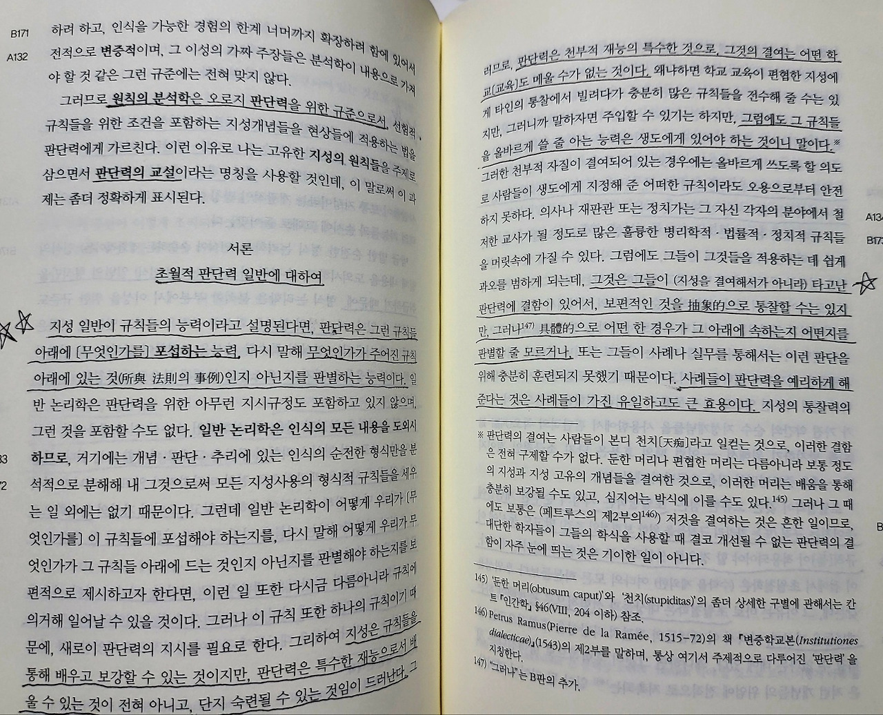 #. [초월적 판단력 일반에 대하여] 지성 일반이 규칙들의 능력이라고 설명된다면, 판단력은 그런 규칙들 아래에 무엇인가를 포섭하는 능력, 다시 말해 무엇인가가 주어진 규칙 아래에 있는 것인지 아닌지를 판별하는 능력이다. 지성은 규칙들을 통해 배우고 보강할 수 있는 것이지만, 판단력은 특수한 재능으로서 배울 수 있는 것이 전혀 아니고, 단지 숙련될 수 있는 것임이 드러난다. 그러므로 판단력은 천부적 재능의 특수한 것으로, 그것의 결여는 어떤 교육도 메울 수가 없는 것이다.
