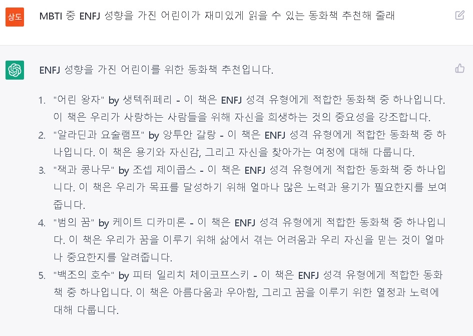 3. MBTI 중 ENFJ 성향을 가진 어린이가 재미있게 읽을 수 있는 동화책 추천해 줄래