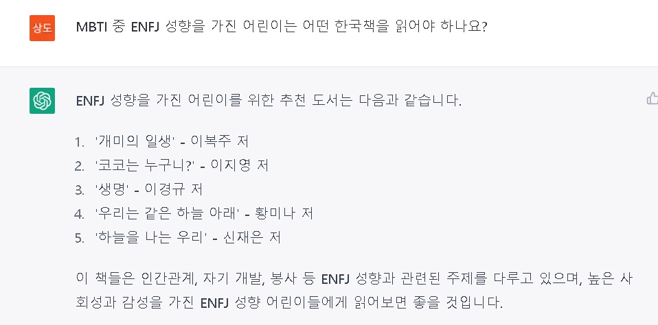 2. MBTI 중 ENFJ 성향을 가진 어린이는 어떤 한국책을 읽어야 하나요?