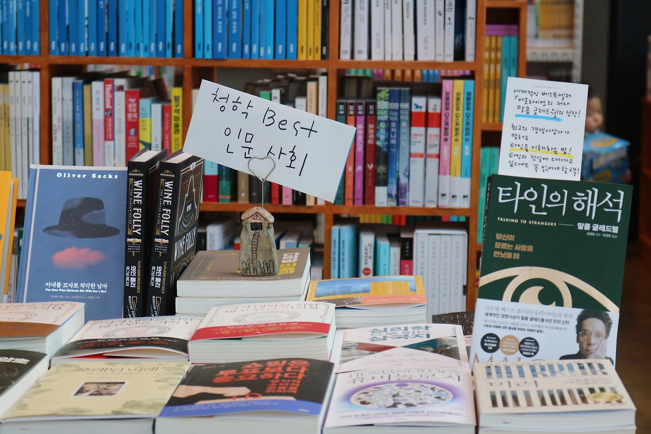 매대마다 주제의 책들이 독자들에게 맞춤형 서비스로 베스트셀러보다 청학서점만의 책들로 구성하여 더 짜임새가 알차 보여 인상 깊었다.