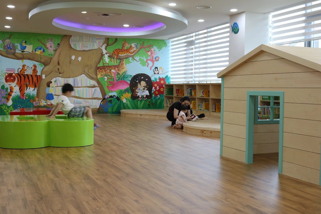 첫 생애 도서관에 오는 날, 아이는 놀이에 접하고 즐긴다. 친구도 만나고 사서 선생님의 들려