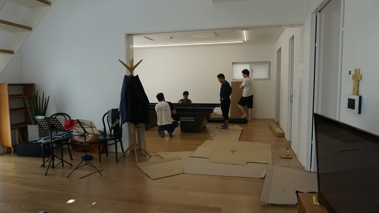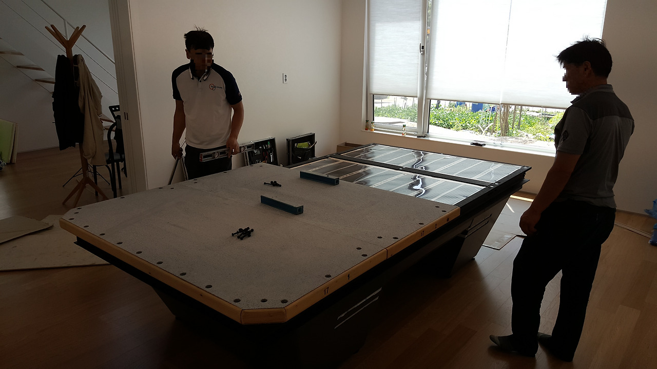 당구대 설치하던 날 모습입니다. 네 분 정도 오셔서 반나절동안 설치를 하셨습니다. 이렇게 오래 걸릴 줄이야.