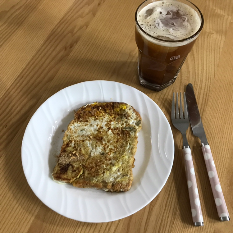 남은 식빵은 프렌치토스트로 만들어서 아이와 먹었다. 잡곡빵이라 사진상 맛없어 보이지만 나름 괜찮았다.캡슐커피 한잔이랑 함께 먹으니 나도 아침 해결하고, 아이 먹기에도 딱!