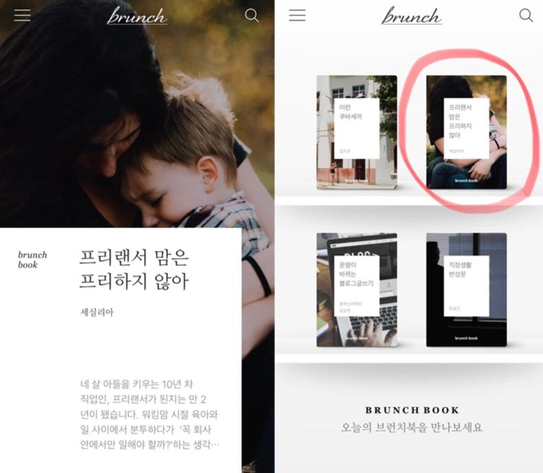 최근 개별 글보다 '브런치북'이 통째로 브런치 메인에 소개되는 경우가 많다. 단일 글보다는 완결된 형태인 브런치북을 브런치에서 밀어주는 거 같은데, 최근 다른 작가님들이 쓴 글을 보면 메인에 있는 브런치북에는 잘 클릭을 안 하게 된다는 의견이 있다(나도 다른 분들 글을 읽을 때 브런치북보다는 개별 글을 주로 읽는 편이다).