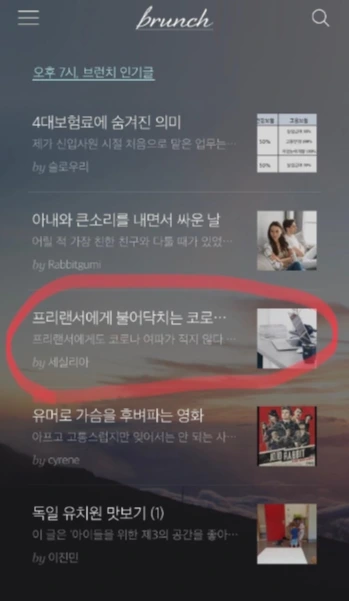 5) 브런치 인기 글 랭킹