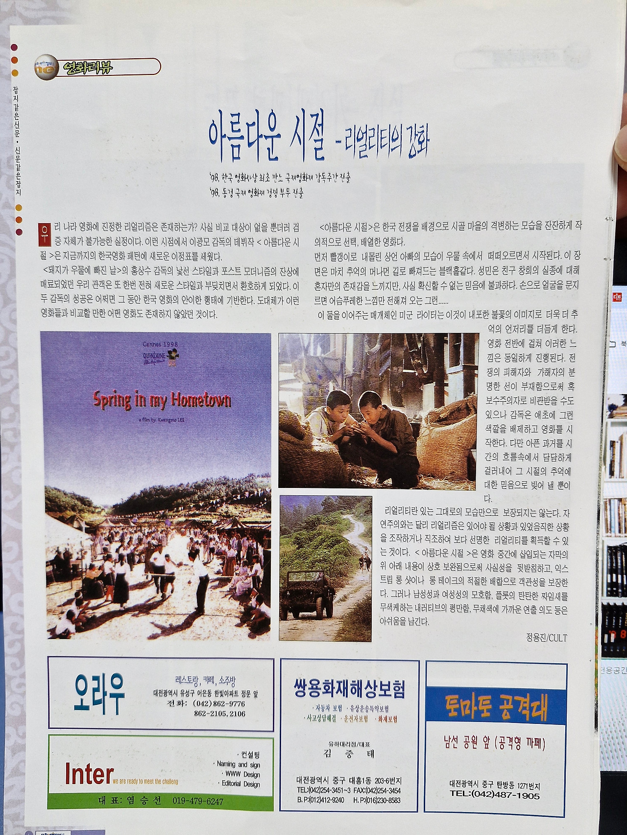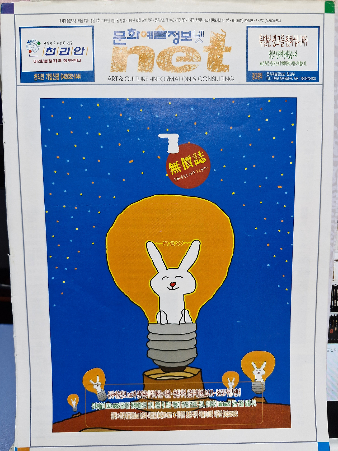 대흥동 사무실을 나와 '토마토 공격대'에서 잠깐 있다가 나왔습니다. 그리고 다시 둔산동 '선사시네마' 지하 골방 사무실에 들어갔을 때였습니다. 그때 서점에서 무료로 배포되는 무가지 문화예술정보 Net을 알게 되었습니다. 얇은 컬러 책자를 가져와서 살펴보고는 이 잡지에 영화에 관한 소식이 좀 부족하다는 생각을 가졌습니다. 마침 소식지도 끊어진지라 이 매체의 영화코너를 우리 컬트가 담당하면 어떨까 하는 생각에 전화를 했습니다. 일종의 협업이었습니다. 전문 디자이너가 있었지만 그쪽도 넉넉하지 않았습니다. 아직 수익이 나지 않는 작은 회사였기에 돈을 벌으면 받기로 하였습니다. 우리는 커피를 사서 마시기 힘든 상태였습니다. 그쪽의 작은 오피스텔이 그나마 선사시네마에서 가까워서 종종 찾아갔습니다. 우리 컬트는 영화의 원고를 써서 건네주었고 작은 광고를 받아내기도 했습니다. 젊은 사람들끼리 서로 힘을 내보자고 했지만 그쪽도 우리도 곤궁하기는 마찬가지였습니다.