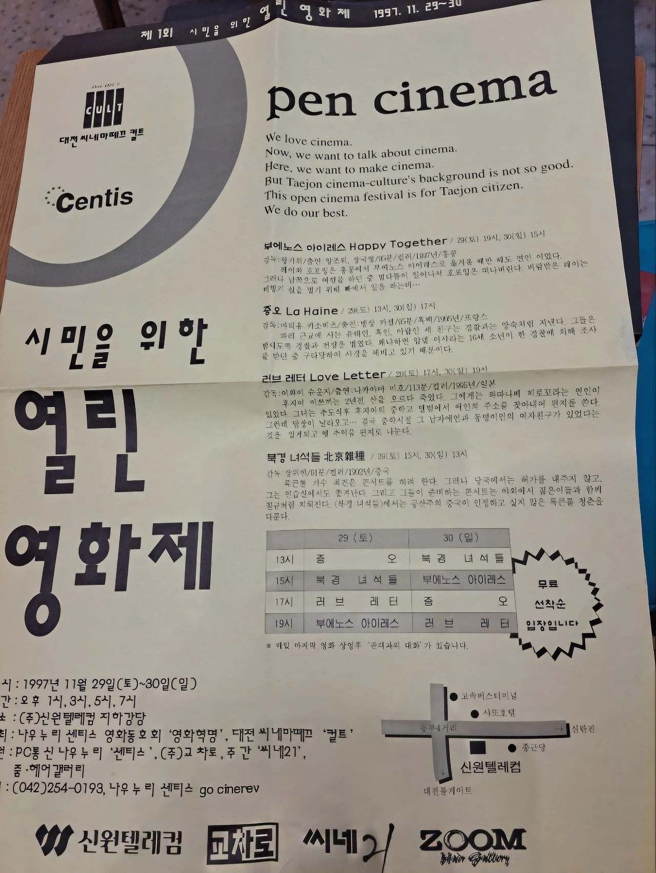 1993년 9월 영화세상에서 시작한 대전 시네마테크 컬트는 기존 컬트의 회원뿐만 아이라 대전 시민들에게 지금 세계 영화의 오늘은 물론이고 영화의 미래와 컬트의 미래를 보여주어야 한다고 생각한다. 아울러 시네마테크와 일반 관객과의 만남 역시 더욱 새롭게 달라져야 할 것이라고 본다. 이것은 영화 마니아를 위한 폐쇄적인 공간이 아니라 열린 영상 문화의 '시립 도서관'적 기능을 갖추고 일반 관객과의 접근 방식에 많은 변화를 추구해야 한다는 숙제의 첫 단추를 꿰고자 한다. 다양하고 내실 있는 영화 관련 프로그램을 기획하여 상영함으로써 영화문화의 문턱을 낮추고자 한다. 아울러 다양한 주제를 가지고 영화를 보고 읽고 토론하며 공부하는 모임과, 직접 카메라를 들고 영상물을 제작하는 모임 등을 활성화되지 않을까 하는 바람을 가져본다. 이런 시도가 차츰 뿌리를 내린다면 아마 나름대로 한국적인 시네마테크의 전형을 이곳 대전에서 완성할 수 있을 것이라는 기대도 가져본다. 이러한 우리 컬트의 노력을 알아주시고 앞으로도 '대전 시네마테크 컬트'를 많이 사랑해 달라고 대전시민들에게 부탁을 드린다. 이것이 우리가 시민을 위한 열린 영화제를 개최하는 목적이자 의미이다. 모쪼록 이번 열린 영화제가 대전 시민들에게 즐거운 추억을 만들고 좋은 영화문화를 만드는 의미 있는 시간이 되었으면 한다.