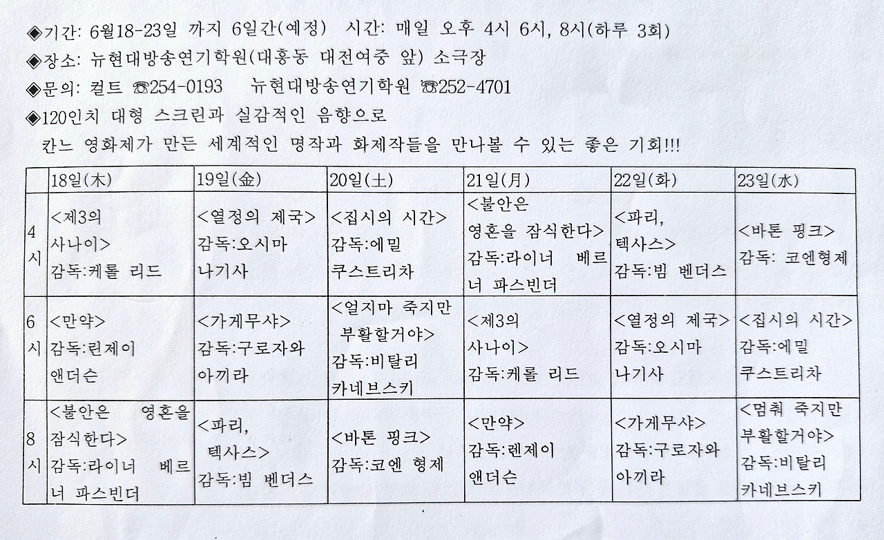 ▣ 기간: 98년 6월 18~23일까지(매일 오후 4시, 6시, 8시(하루 3회)