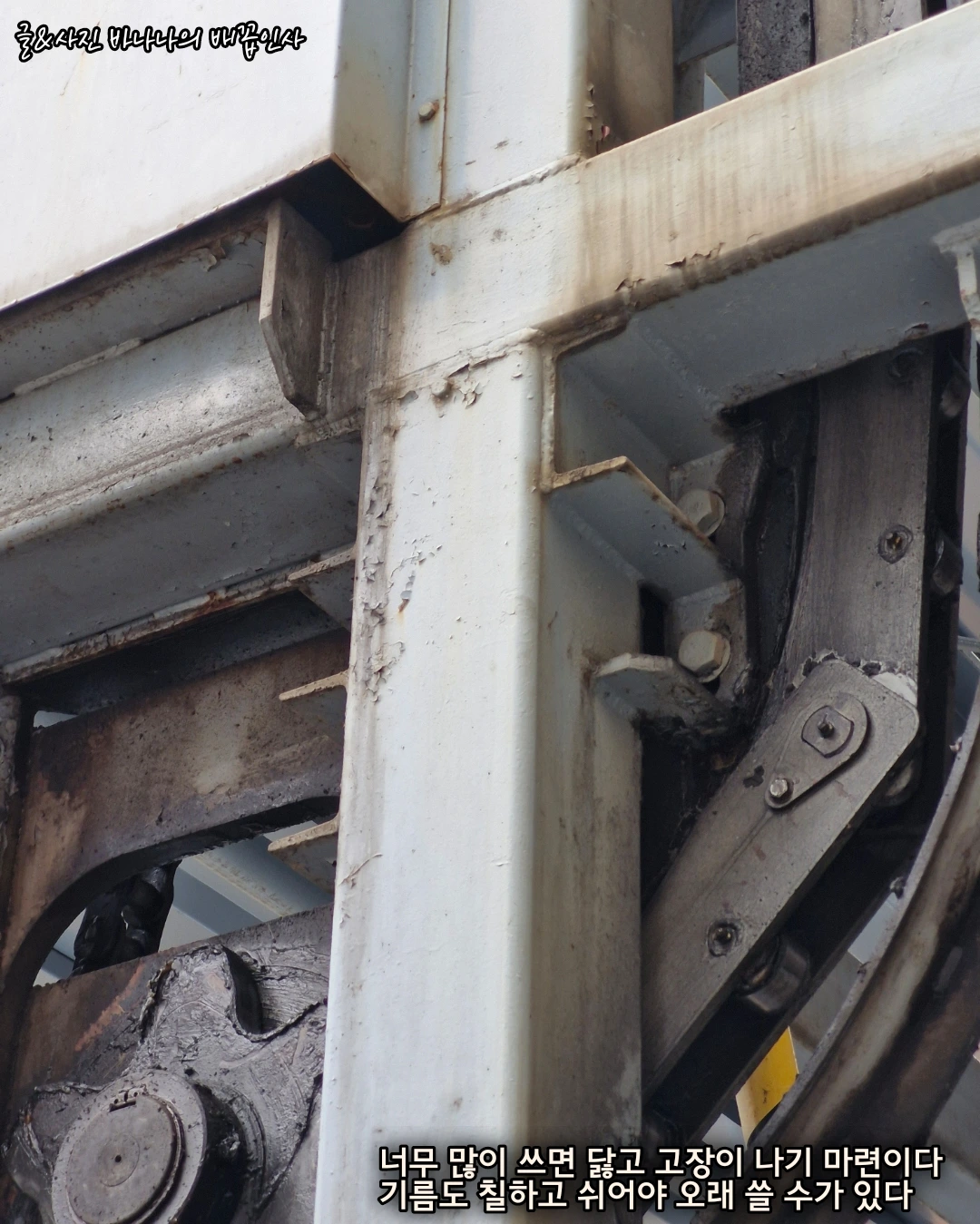 강남에 있는 승강기형 주차타워의 모습입니다. 육중한 강철과 기름이 칠해진 모습이 그 무게와 힘을 짐작하게 합니다. 요즘 너무 힘들게 일하고 있습니다. 브런치 연재 글 쓰느라 취침 시간이 더 줄어들었어요. 뭐 요즘 안 바쁘고 힘들지 않은 사람이 어디 있겠습니 까만 힘들긴 힘듭니다. 환절기라 더 그런 것 같기도 합니다. 아침저녁으로는 쌀쌀합니다. 제가 사는 경기도 광주지역은 경기도의 동쪽으로 강원도랑 가까워서인지 기온이 서울 보다는 2~3도는 낮은 것 같습니다. 며칠 전 봄비가 내린 날 저녁 퇴근 시간에는 입김이 나오더라고요. 봄인 듯 하지만 아직 아침저녁 쌀쌀한 느낌이 드는데 안 그런가요?