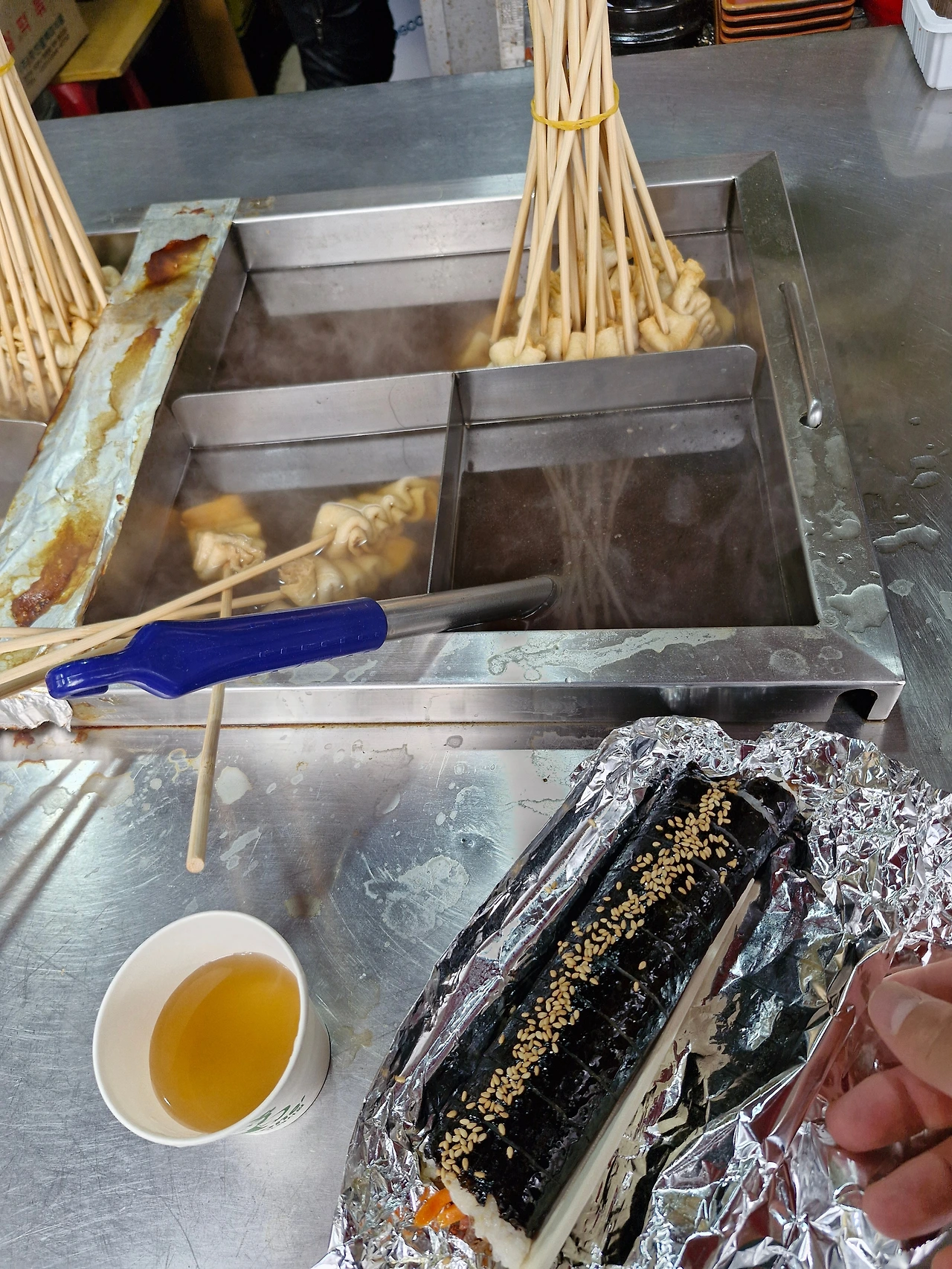 새벽에 버스를 타고 출근한다. 모란역에서 내려 지하철호 환승하기 전에 잘 가는 김밥집에 오랜만에 들렀다. 3천 원짜리 야채김밥이다. 작년 봄까지는 2,500원이었는데 500원이 오른 가격이다. 그래도 직접 싸서 주는 즉석 김밥을 맛이 너무 좋다. 주문을 하면 참기름을 한번 발라주고 깨소금을 쭈욱 뿌려준다. 따끈한 어묵 국물을 컵에 국자로 떠 한잔 마신뒤 김밥을 먹는다. 아 깜빡 잊은 게 있다. 어묵에 찍어 먹는 간장 양념장에서 고추와 양파를 조금 덜어 김밥 접시에 놓은 거다. 싱겁지는 않지만 김밥 하나 떼서 간장에 있는 청양고추나 양파를 떡 올려놓고 먹으면 더욱 맛있는 김밥이 된다. 참고로 어묵은 3개 2,000원. 이른 아침 출근을 재촉하는 시민들은 어묵과 포장을 해가기도 한다. 김밥 한 줄을 먹을 때 어묵 국물 3컵을 먹어줘야 뱃속이 든든하다.