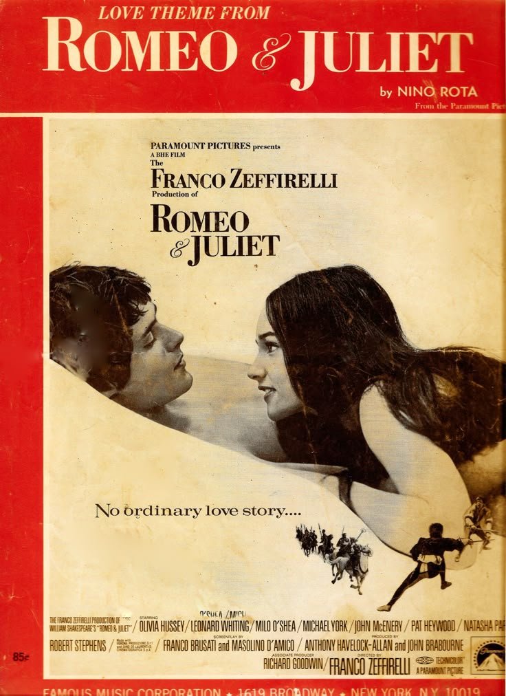 - 프랑코 제피렐리 감독. 올리비아 핫세, 레오나드 파이팅 주연. 베로나의 명문가의 캐플릿가와 몬테규 가는 원수사이였다. 몬테규가의 로미오는 케플릿가의 연회에 가면을 쓰고 들어가 그 가문의 딸인 줄리엣에 첫눈에 반해 둘은 사랑하게 되는데...