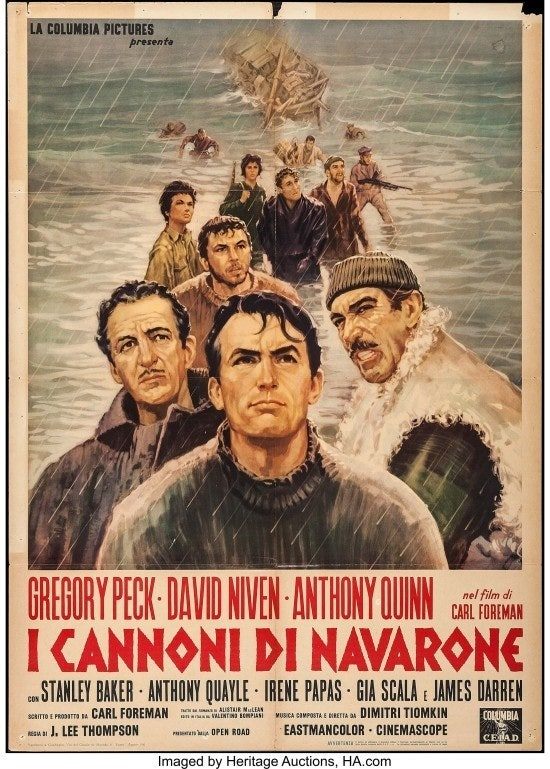 - 연합군 함대를 괴롭히는 나바론의 독일 포대를 파괴하는 목표를 가진 연합군 특공대의 활약을 그린 2차 세계 대전 전쟁영화. 7명으로 구성된 특공대는 어선을 타고 나바론의 요새로 접근한다...
