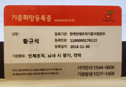 저처럼 장기기증 희망등록을 하면 운전면허증에 아래 사진처럼 표시가 되는