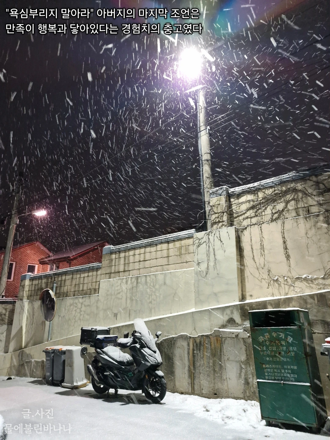 아버지 1주기가 지나고 이제 옛날 사진도 정리하고 가끔 함께 지냈던 시절의 생각이 납니다. 그런데 그 말이 조금 다시 들리기 시작했습니다. 모든 화의 근원은 욕심을 부려서 그런 것이 아닌가 하는 생각말입니다. 그냥 이렇게 밥 굶지 않고 다가구 주택 하나 마련해서 살고 있으면 만족해야 하는 데 자꾸 욕심을 내는 것입니다. 저는 그때 욕심과 도전을 혼돈하지 않았나 싶기도 합니다. 일단 내가 가진 것이 적어도 내 상황과 형편에 대한 만족이 있어야 하지 않을까 생각이 드는 것입니다. 만족이 있어야 감사가 따라오고 행복이란 기분을 느끼지 않나 싶습니다. 매번 위를 바라보면 정말이지 자기 것에 만족을 하지 못하지 않습니까?