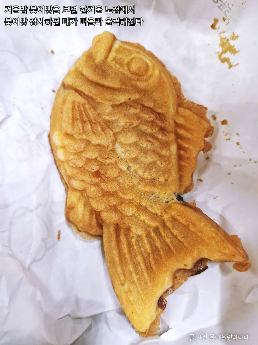 사람들도 희미한 버스 정거장 부근 포장마차 아래서 따끈따끈한 붕어빵을 기다린다. 요즘은 크림빵도 있고 종류도 참 다양하다. 물론 가격도 많이 올라서 보통은 3개 2천 원이 기본인 것 같다. 한 개에 천 원짜리도 많이 있는 거 같고 나 때는 25년 전에는 보통 5개에 1000원이었다.