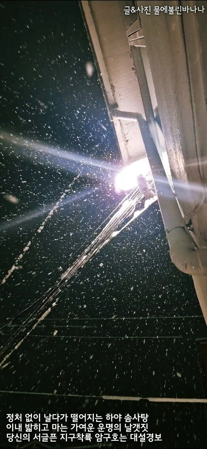 짧고 가벼운 비행으로 삶을 마감하는 서글픈 흰 눈