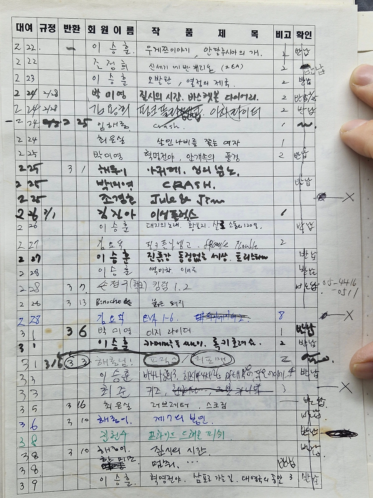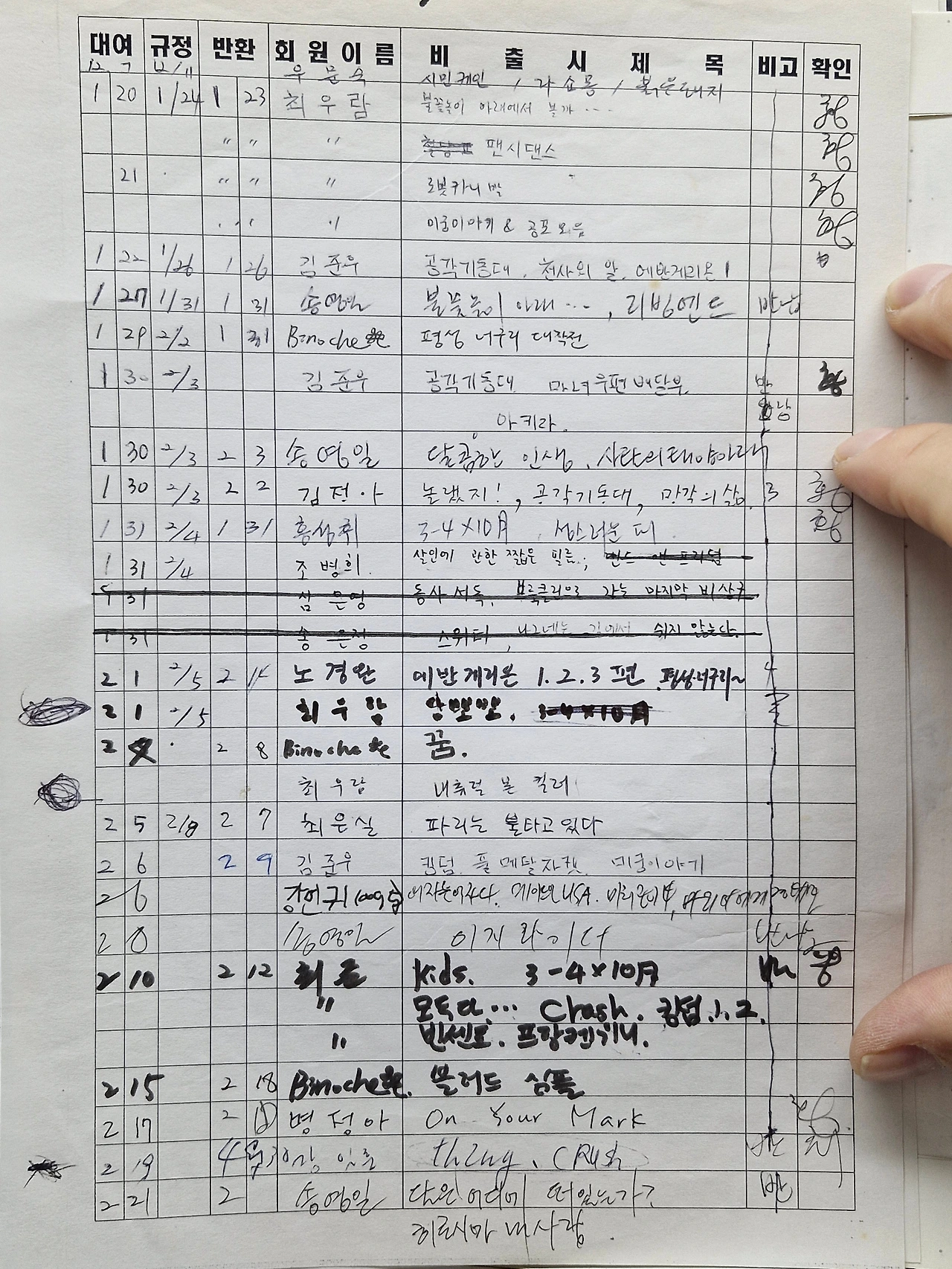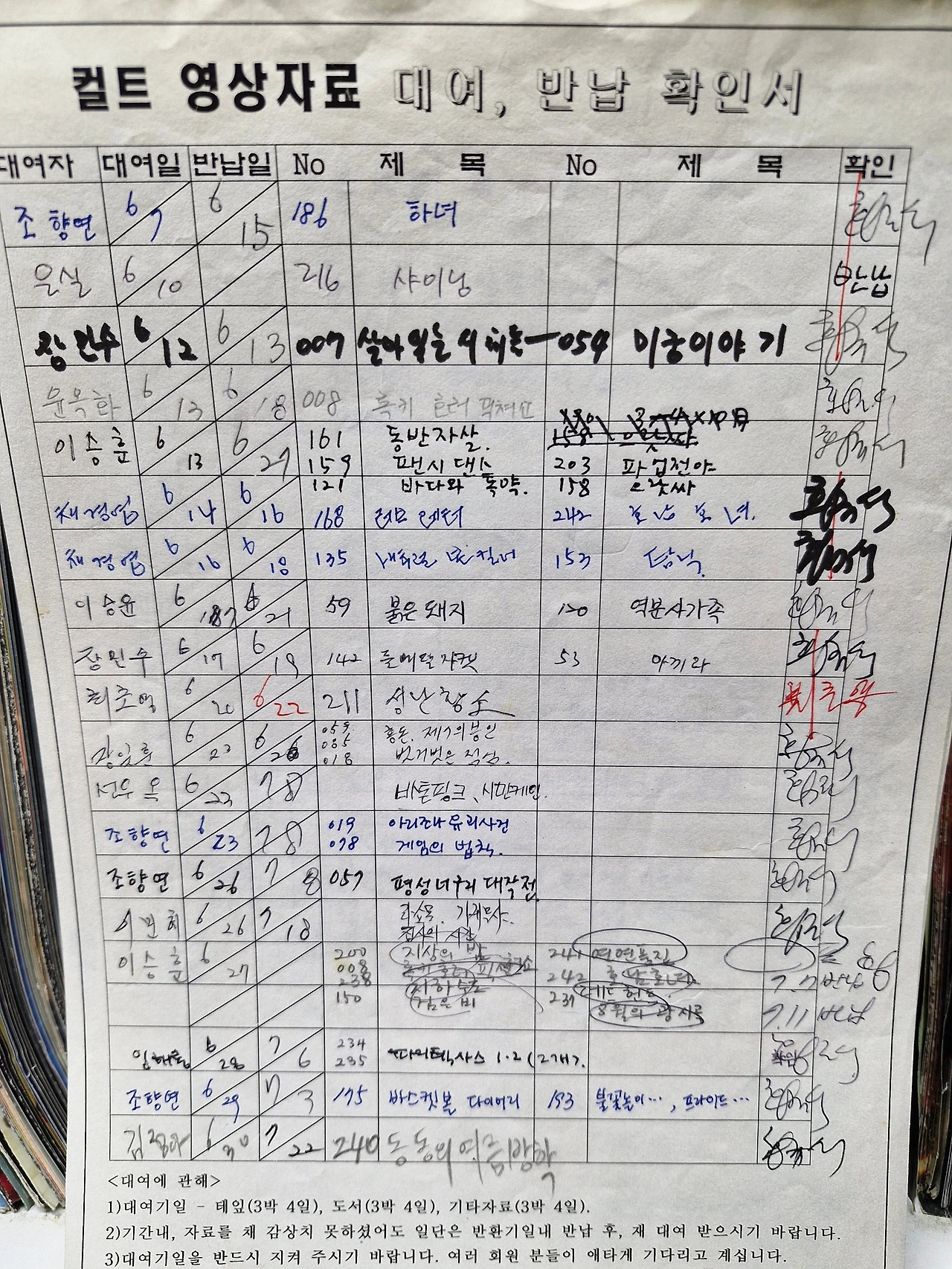 도서와 비디오 장부 중 비디오 대여장부 역시 아나로거