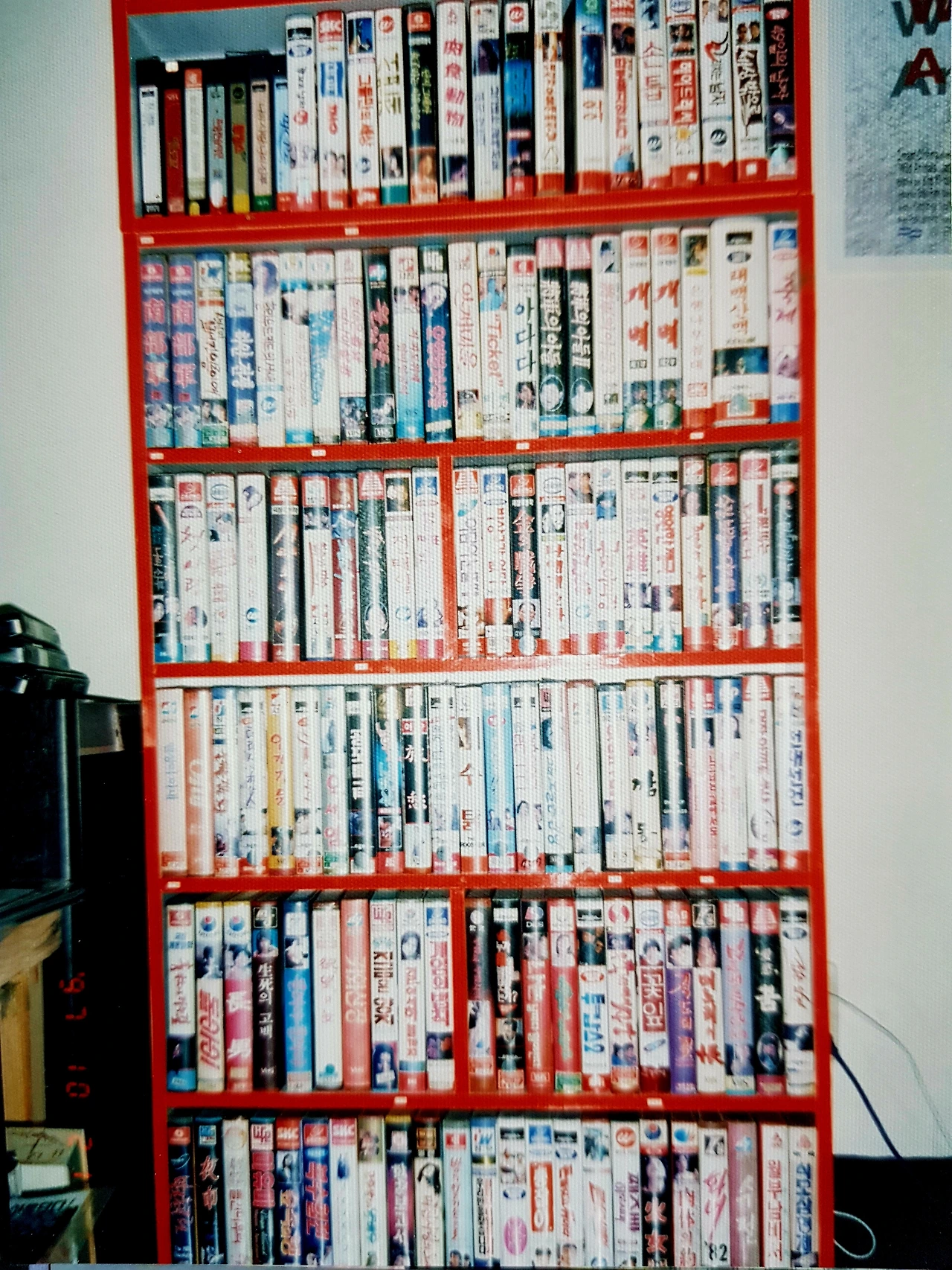실시간으로 VHS 테이프를 복사하다 보니 러닝 타임이 그대로 필요했습니다. 긴 시간의 영화는 정말 시간이 오래 걸렸습니다. VTR 두대를 연결하고 영상 출력과 음성 출력 좌우 2개 라인을 IN, OUT으로 구분하여 빨간 선과 흰 선을 연결했습니다. 플레이와 함께 REC 버튼을 눌렀습니다. 복사 방지를 위해모서리 플라스틱이 떨어진 것은 스카치테이프를 붙여 간단히 해결하였습니다. 호환 마마보다도 무섭다는 불법 음란 테이프 광고가 제일 먼저 나오던 때였습니다. 테이프를 구한 곳은 체인점인 '영화마을' 비디오 대여점이 다양한 작품이 많아서 자주 갔습니다. 대전 태평동 사거리에 있는 곳은 카운터를 보는 누님이 정말 영화를 많이 보고 해박한 지식이 있어서 자주 갔습니다. 성베네딕트 수도원이라는 곳에서는 '나무를 심는 사람'이라든지 타르코프스키 작품을 출시하기도 했습니다. 그 가게 사장님에게 행사 때 몇 만 원씩 또 후원을 받기도 하고 우리 회지도 전달하기도 했습니다. 지금 건강하게 잘 계시는지 궁금하고 그때는 정말 고마웠습니다.