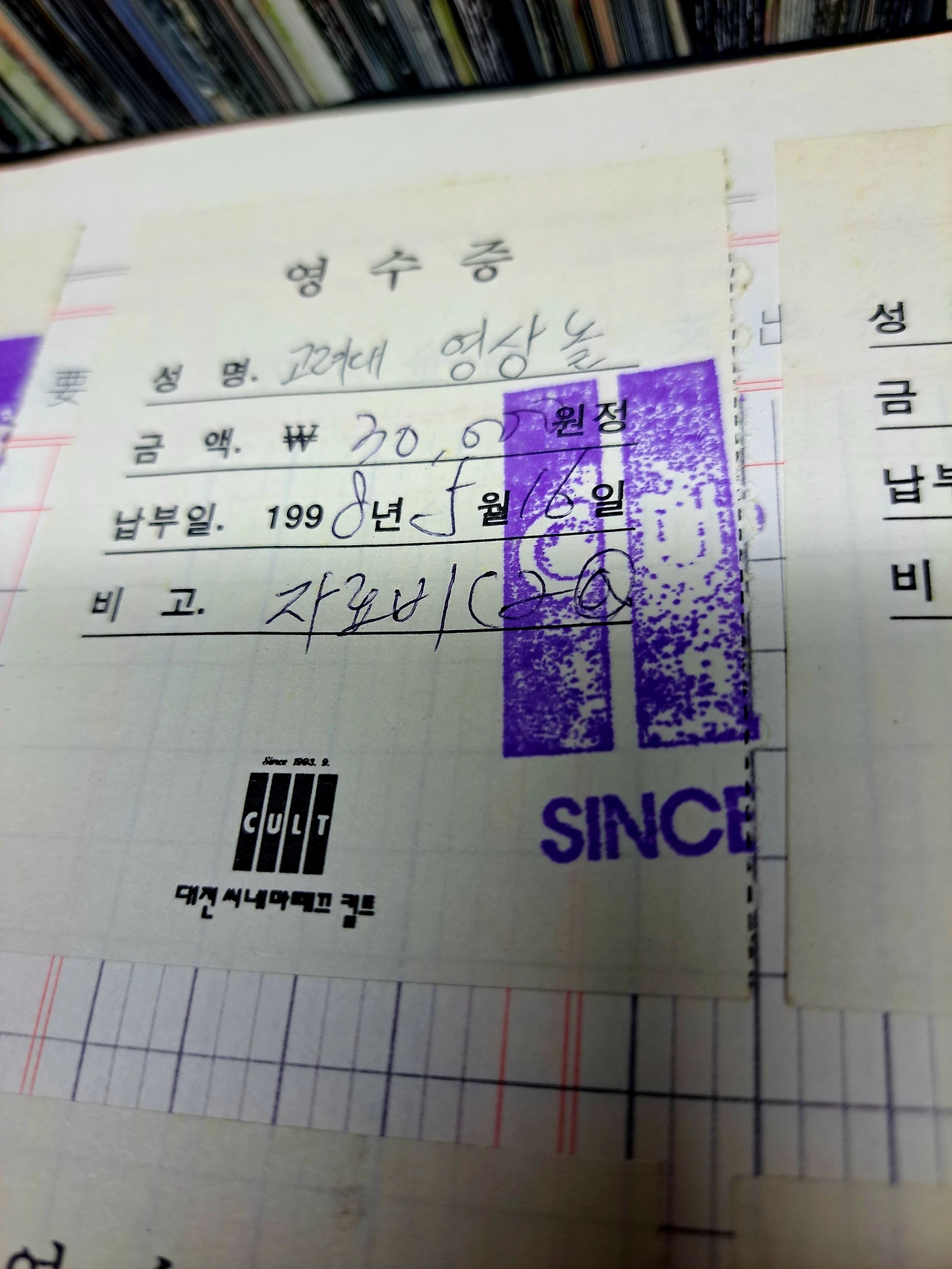 그리고 또 폐업을 한 비디오 가게가 우리의 주요 자료 공급처가 되었습니다. 싸게 많이 구할 수 있었습니다. '당나귀 무법자'라는 한국영화인데 코미디이고 서부극을 모방한 영화가 기억에 남습니다. 폐점 가게에 가면 쭉 훑어보고 관심이 가는 작품은 눈에 찍어 놓았다가 별로 관심이 없는 척을 해야 합니다. 그래야 나중에 일반적인 테이프에 끼워서 싸게 살 수 있었으니까요. 그런데 폐 비디오가게를 전문 처리하는 사장님과 자주 장소는 달라도 마주치다 보니 들어갔다가 사장님이 없을 때를 노리기 위해 그냥 나가는 경우도 있습니다. 사장님도 비싸게 받을 수 있는 작품을 아시더라고요. 아, 그리고 비디오 장도 주요 수집 품목입니다. 일반 책장보다 좋아서 어디 골목 어귀나 비디오가에 인테리어 할 때 그 무거운 비디오장을 들고 땀을 뻘뻘 흘리며 가져오기도 했습니다. 서울에서 온 회원의 발품을 이용하기도 했습니다. 지금 서울대 입구옆 근처에서 '지오북카페를 운영하시는 김기수 회원님도 그 기억이 생생하다고 합니다. "그때 같이 두 시간을 들고 가는데 너무 힘들었어요. 황규석 씨는 정말..." 미치지 않고는 정말 할 수 없는 일이었습니다
