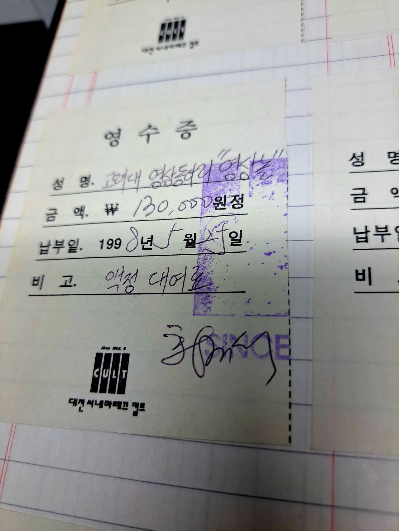 영화제를 한다고 플래카드를 만들어서 걸었을 때의 뿌듯함은 정말 이루 말할 수 없었습니다. 커다란 소니 텔레비전이었는데 그때 비디오 데크가 고장 나서 애먹었던 기억도 새롭습니다. 사실 VHS 테이프가 씹히는 일이 정말 다반사였습니다. 그래서 작은 십자드라이버를 주머니에 넣고 다녔습니다. 안의 릴이 꼬이면 나사로 테이프 전체를 해부를 해야 합니다. 양쪽 톱니바퀴를 풀어서 꼬인 곳을 펴 다시 제대로 감고 다시 나사를 조여 테이프를 조립합니다. 다시 플레이 버튼을 누르면 영화가 그 씹힌 부분은 지지직거렸지만 신기하게 또 그냥 그런대로 잘 나왔습니다. 그리고 문화학교 서울의 자료를 돈을 주고 카피해서 받고 다시 우리 테이프를 돈을 받고 다른 지방으로 복사를 해서 주었습니다. 대학의 동아리에도 복사를 해주었습니다. 당연히 그 당시에는 수입이 금지된 일본 영화가 많았습니다. 당연히 화질은 다시 또 복사를 하니까 화질이 떨어졌습니다. 그래도 영화에 대한 호기심과 열정이 그 흐릿하고 비 오는 화면마저도 방해가 아닌 걸로 당연히 감수해야만 하는 작은 불편함으로 만들게 했습니다... 그때는 정말 아날로그 시대였습니다.